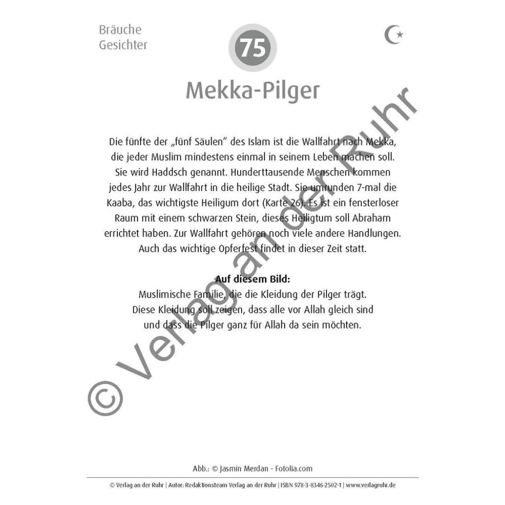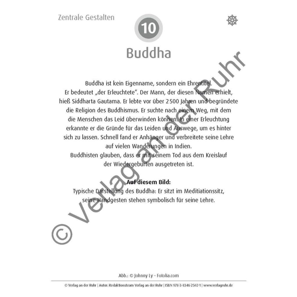 Bildkarten für Grundschule und Sekundarstufe I, Fächer: Katholische Religionslehre, Evangelische Religionslehre, Ethik, LER; Klasse 3-10 +++ Wenn Sie die Weltreligionen in Ihrem Religions- oder Ethikunterricht behandeln, finden Sie in diesem Unterrichtsmaterial viele hochwertige, farbige Fotos zu Christentum, Judentum, Islam, Hinduismus und Buddhismus. Die Bildersammlung ist geordnet nach den Themen: Wichtige Figuren (Gründer, Gottesvorstellungen, Vertreter), Heilige Orte, Symbole, Bräuche, Schriften und Gegenstände. Die Kartenrückseite informiert die Schüler über wichtige Hintergründe. In der Lehrerhandreichung finden Sie zahlreiche Anregungen, wie Sie die Bild- und Fotokartei für den Unterricht nutzen können: als Impulsgeber zum Erzählen, Schreiben, Nachdenken oder Diskutieren, als Informationskarten oder meditatives Element. Die Bilder bereichern Gesprächsrunden, Einstiege oder Reflexionsphasen und sind ebenso für den offenen Unterricht geeignet wie für Pädagogen in der außerschulischen Kinder- und Jugendarbeit. Religionen: Christentum, Judentum, Islam, Hinduismus, Buddhismus, Themen: Wichtige Figuren, Heilige Orte, Symbole, Bräuche, Bedeutsame Schriften und Gegenstände - mit Sachinfos auf der Kartenrückseite