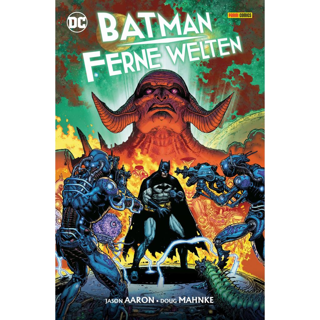 BATMAN IM ALL Um als Batman Gotham City und die Erde vor wirklich allen Gefahren beschützen zu können, reist er sogar bis ins Weltall. Dort begegnen ihm völlig neue Herausforderungen und Gegner: Auf Raumschiffen voller Söldner und Planeten voller Raubtiere, auf denen nur das Recht des Stärkeren gilt, tritt Batman gegen einige der größten, fiesesten und brutalsten Monster der gesamten Galaxis an und stellt sich dem Kampf seines Lebens! Ein kompletter Science-Fiction-Kracher mit dem Dunklen Ritter im All, in Szene gesetzt von den Superstars Jason Aaron (Star Wars, Thor) und Doug Mahnke (Detective Comics, Superman). ENTHÄLT: BATMAN: OFF-WORLD 1-6