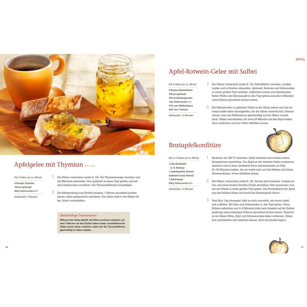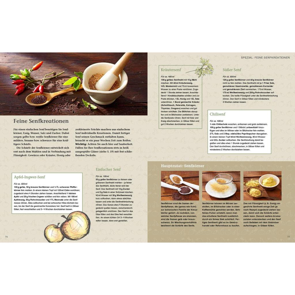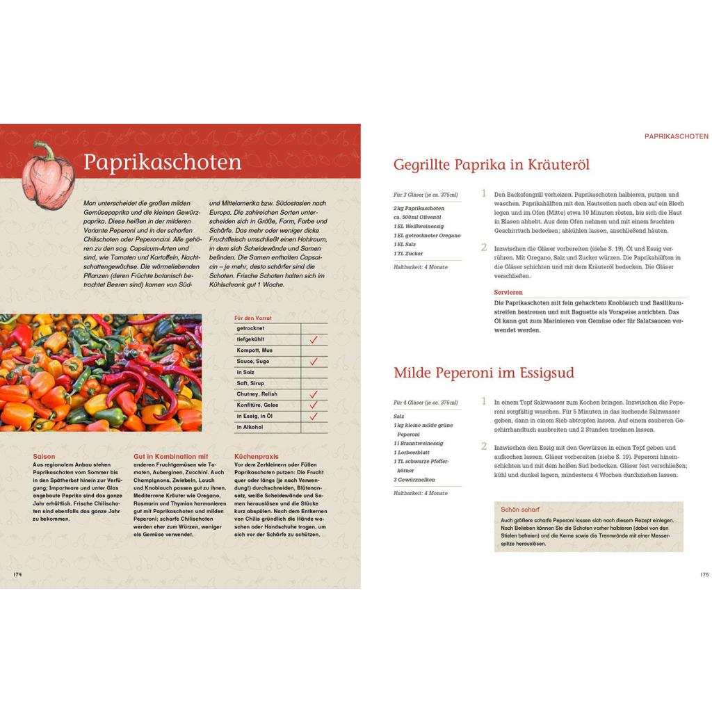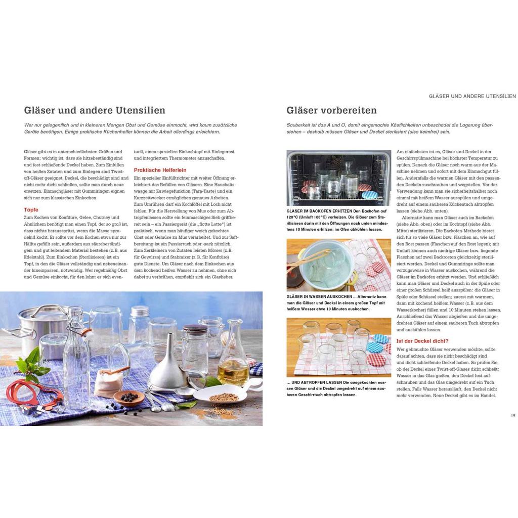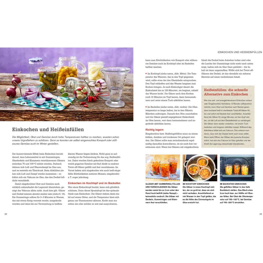Vorräte einmachen - so gelingt's Nichts schmeckt besser als fruchtige Himbeermarmelade, würzige eingelegte Tomaten oder saftiges Sauerkraut aus eigener Herstellung ohne künstliche Zusätze, abgefüllt in hübsche Gläser und Flaschen. Selbst eingemachte Köstlichkeiten aus Obst und Gemüse lassen selbst im Winter den Sommer wieder aufleben. Einmachen - gewusst wie Lesen Sie, was Sie bei Einmach-Techniken wie Einlegen, Einwecken oder Trocknen und Heißeinfüllen beachten müssen. Mit wenig Aufwand können Sie frisches, erntereifes Obst und Gemüse haltbarmachen, für den eigenen Bedarf Vorräte herstellen oder Selbstgemachtes verschenken. Sie erfahren alles über natürliche Konservierungsmittel wie Salz und Zucker, Essig, Öl und Alkohol. Einmachen von Obst und Gemüse In diesem Einmach-ABC finden Sie von A wie Apfel bis Z wie Zwiebel ¿ 45 Obst- und Gemüsearten: Äpfel und Quitten, Steinobst, alle heimischen Beeren und Wildfrüchte, Gurken und Tomaten, Rote Bete und Hülsenfrüchte sowie Kräuter, Nüsse und Pilze ¿ mehr als 270 Rezepte, die garantiert gelingen. Mit Angaben zu Haltbarkeit und Aufbewahrung ¿ Marmeladen und Liköre, Chutneys, Pickles und würzige Saucen, ¿ Eingelegtes in Essig oder Öl, milchsauer oder würzig-scharf. Einmachen und was dazu gehört Zusätzlich zu den tollen Rezepten zum Einwecken und Einmachen erhalten Sie nützliche Tipps für ¿ Aromaöle, Gewürzsalzmischungen und Senfkreationen, die in keiner Küche fehlen sollten und stets willkommene Geschenke sind ¿ Tipps für die Herstellung von Säften aus Obst und Gemüsen, etwa Möhren und Rote Beten ¿ Ideen für hübsche Geschenkverpackungen der eingemachten Delikatessen ¿ Angaben zu Verwendung und Serviervorschläge Ganz gleich, was die Jahreszeit Ihnen bietet, Sie finden tolle Rezepte für Klassiker genauso wie neue Ideen zum Einkochen. Ganz gleich, wo Sie das Buch aufschlagen, es macht Lust auf lecker eingeweckte Köstlichkeiten.