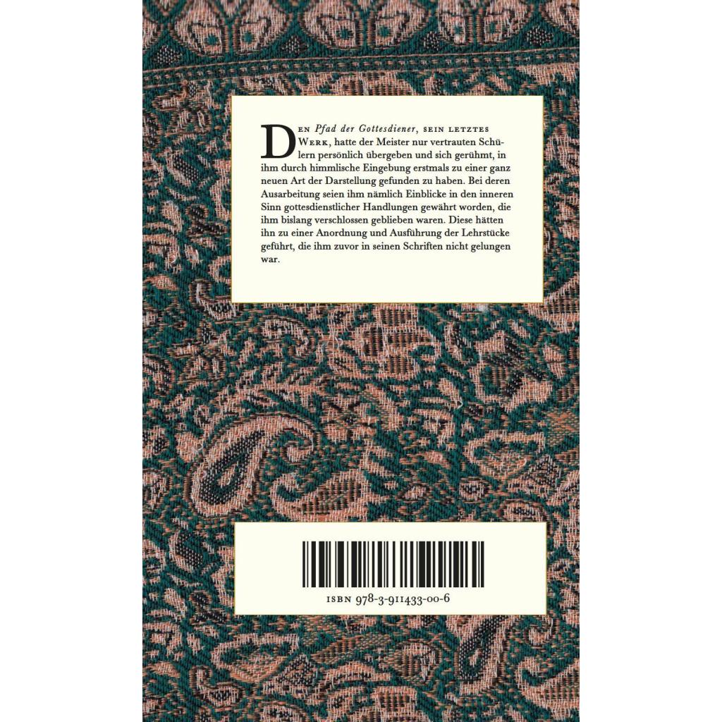 Das in der Übersetzung von Ernst Bannerth hier vorgelegte Werk Imam al-Ghazâlîs, "Der Pfad der Gottesdiener", minhâj al-'âbidîn, unterscheidet sich von allen anderen Werken unseres "Jahrtausendgelehrten", sofern es als das von ihm zu allerletzt verfaßte seit je besondere Beachtung auf sich zog und überliefert ist, der Meister habe es nur den vertrautesten seiner Schüler persönlich überreicht. Es ist ein Werk, über das der Autor sich geradezu beglückt zeigt, so Allah ihm nach eigenem Bekunden bei dessen Ausarbeitung Einblicke in den inneren Sinn gottesdienstlicher Handlungen gewährte, die ihm bislang verschlossen waren, und ihn zu einer wunderbaren Anordnung der Lehrstücke geführt hatte, die ihm zuvor in seinen Schriften nicht gelungen war. Unter den Titeln "Wissen", "Bekehrung", "Hindernisse", "Heimsuchungen", "Triebkräfte", "Ablenkungen", schließlich "Lobpreis und Dank" entwickelt der Autor - zur Besserung und zum Heile - sieben Aufstiege der Seele.