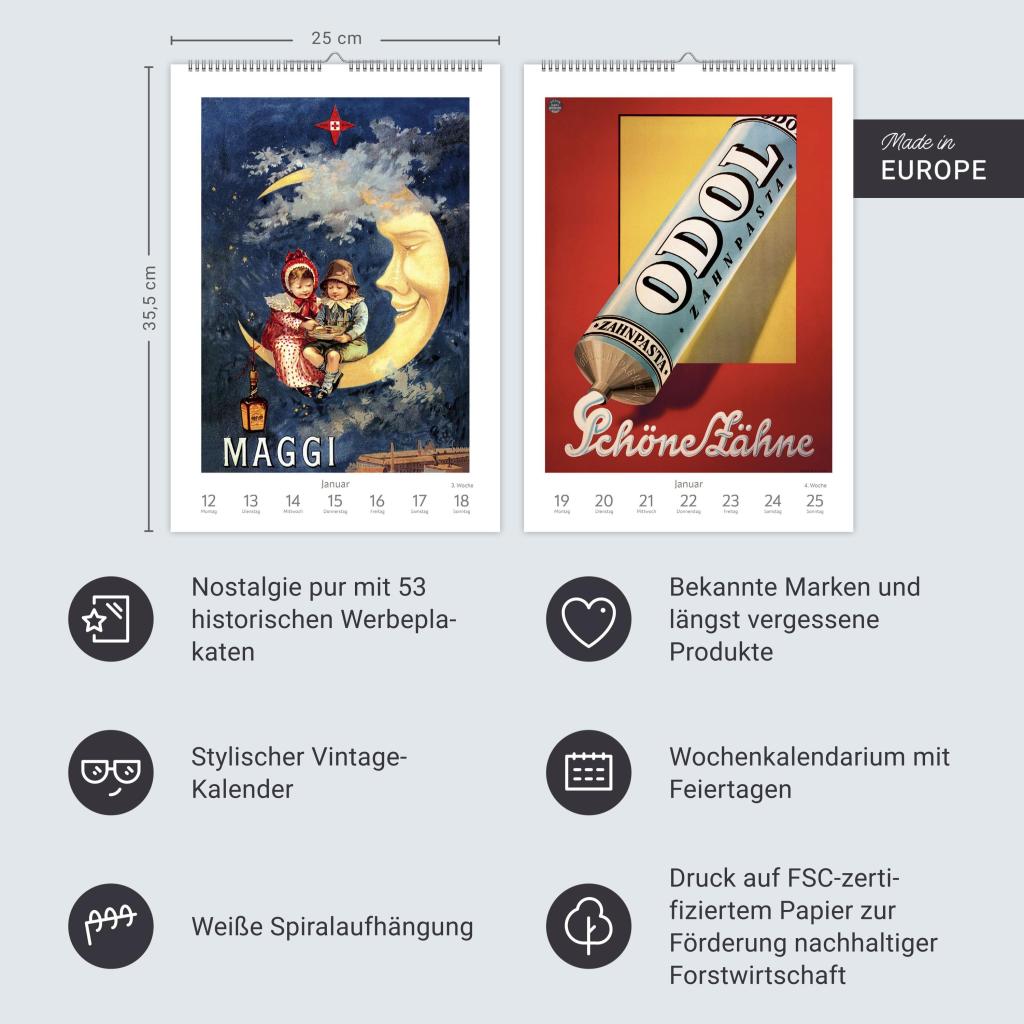 Nostalgie-Kalender. Kultiger Wand-Kalender für Retro-Fans. 25 x 35,5 cm. Hochformat