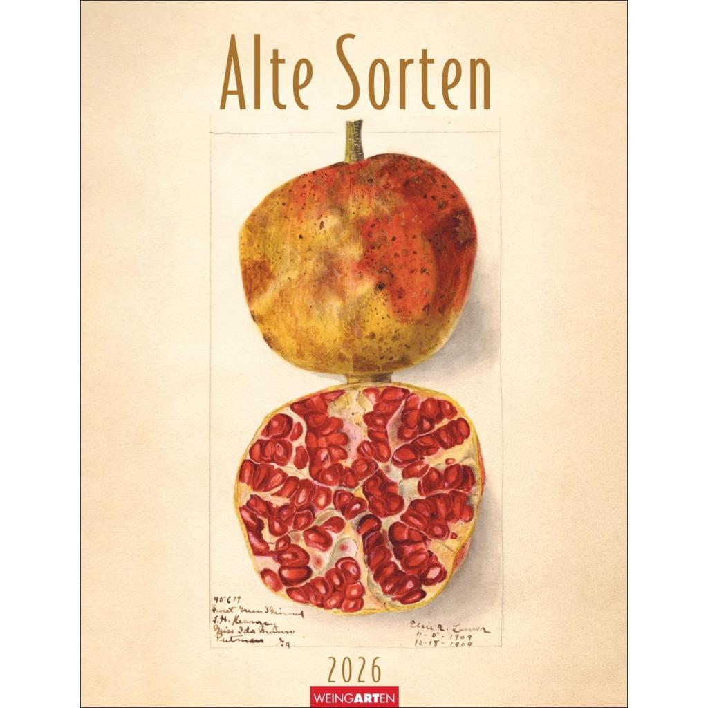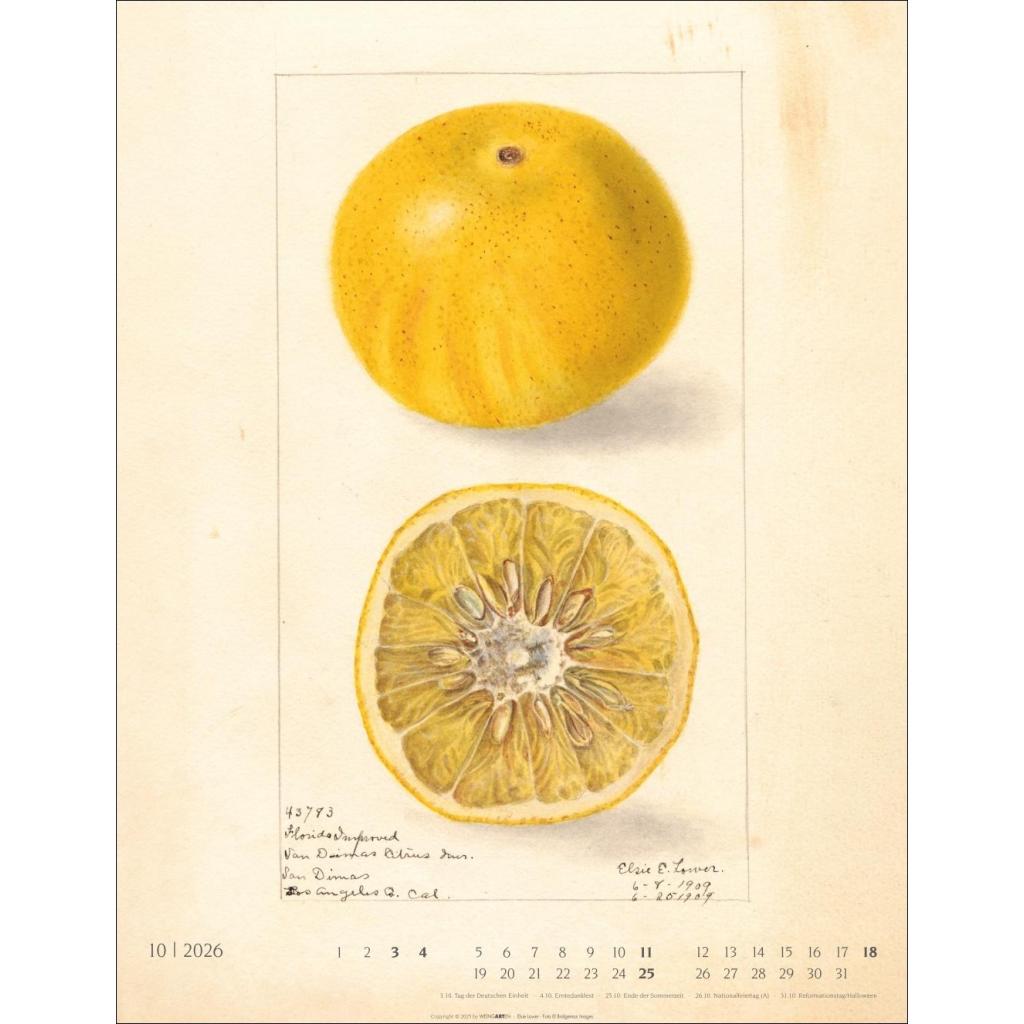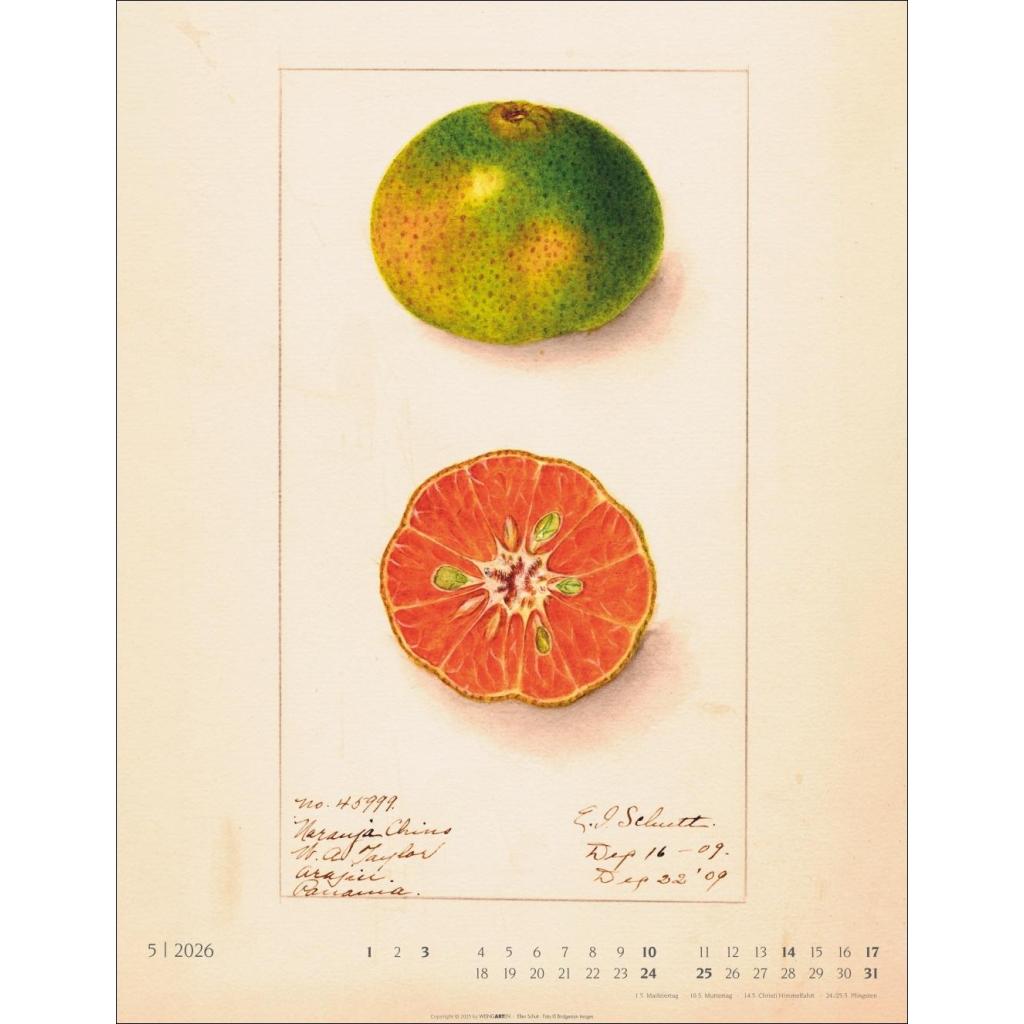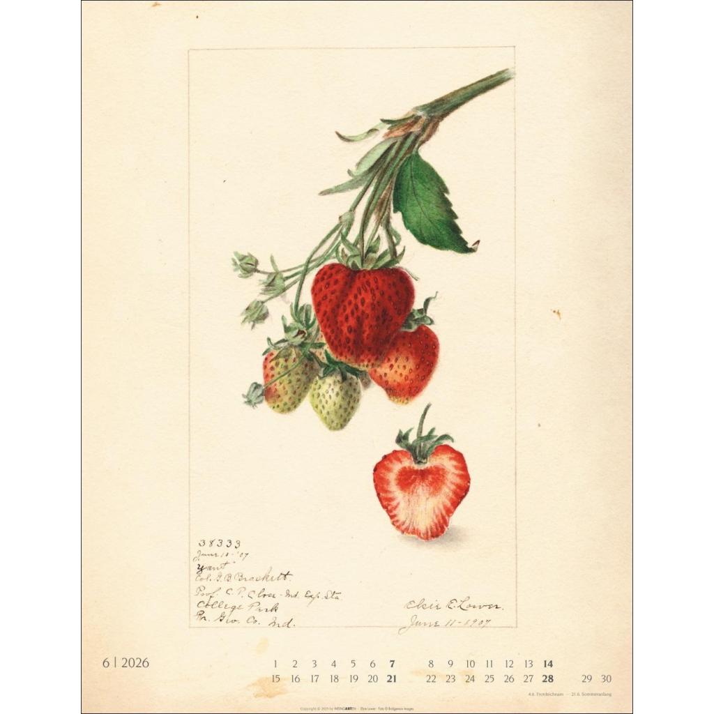 Dekorativer Wandkalender mit historischen Zeichnungen. Die Klassiker im Obstgarten in Szene gesetzt: Natur- und Food-Kalender im Format 34 x 44 cm