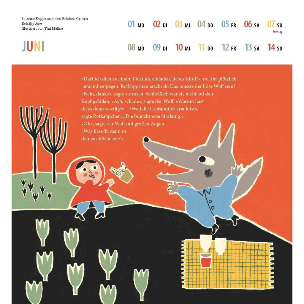 Beliebte Klassiker und spannende Entdeckungen aus der Märchenwelt Auch 2026 ist der Arche Märchen Kalender ein großer Schatz für alle, die sich noch nie gehörte Abenteuer und bekannte Geschichten erzählen lassen möchten. Mit seinen wunderschönen Illustrationen und den liebevoll nacherzählten Märchen auf der Rückseite ist der Kalender ein besonderer Begleiter durch das Jahr. Mit: Dornröschen, Der gestiefelte Kater, Die Konferenz der Vögel, Die Bremer Stadtmusikanten u. v. a. m.