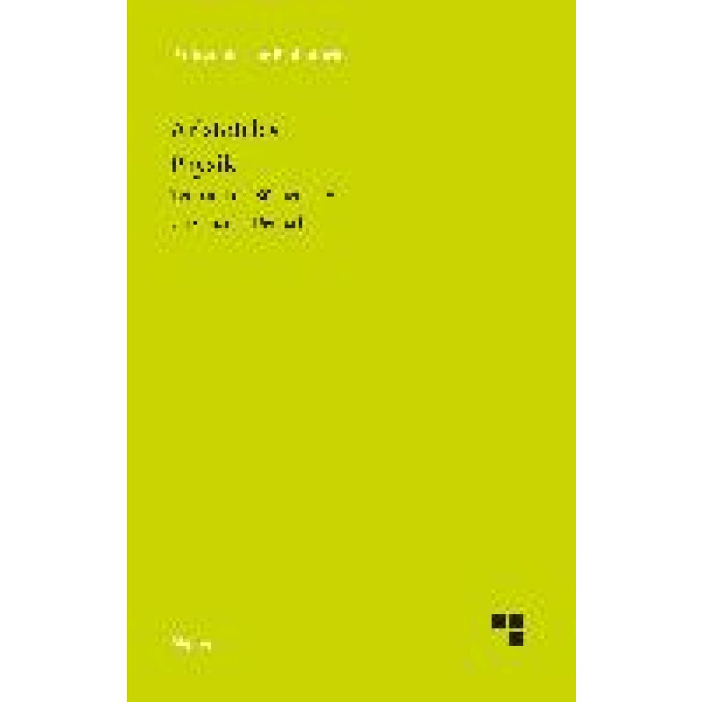 Anders als der Titel suggeriert, hat die aristotelische "Physik" mit Physik im heutigen Sinne nicht viel zu tun. Denn "physikê" bedeutet Naturwissenschaft, und diese ist in Aristoteles' Wissenschaftssystematik - im Unterschied etwa zur Ersten Philosophie - eine Einzeldisziplin. In der "Physik" werden philosophische Vorfragen bezüglich der Erkenntnis einzelner "Naturdinge" geklärt: Fragen nach den Prinzipien, den Gegenständen und den Beschreibungsmitteln der Naturwissenschaft. Die Themen der Bücher I-VIII sind daher, beginnend mit vorgängigen Überlegungen zu den Prinzipien aller Forschung: Bewegung, Unbegrenztes, Ort, Leeres, Zeit, Kontinuum, Bewegungsparadoxa, kinematische Ketten und bewegungslose Beweger. Mit dieser Ausgabe legt Gottfried Heinemann eine völlige Neuübersetzung der "Physik" vor, die an zahlreichen Stellen zu revidierten Übersetzungsentscheidungen kommt. Eine ausführliche Einleitung, Anmerkungen und Register ergänzen den Band.