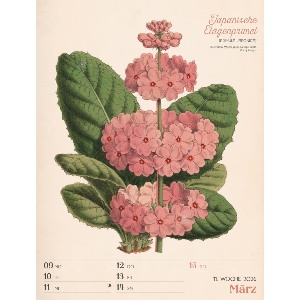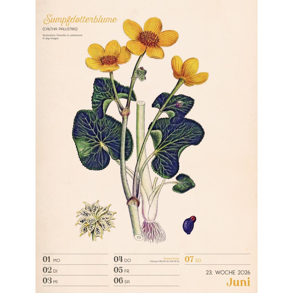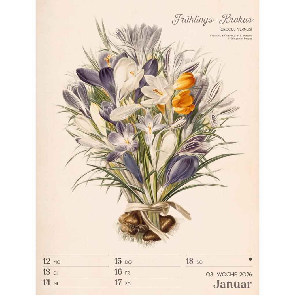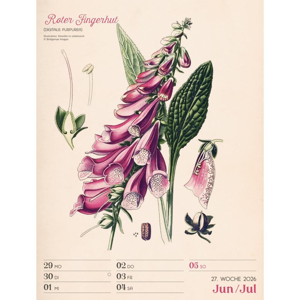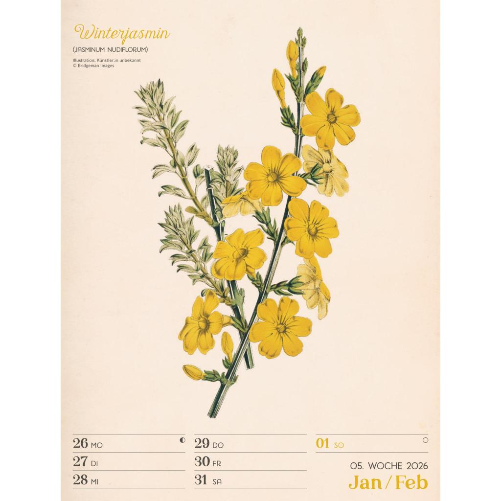 Informativer Blumen-Wochenkalender im Hochformat (25x33 cm) | Vintage & Retro | Rätsel & Sudokus