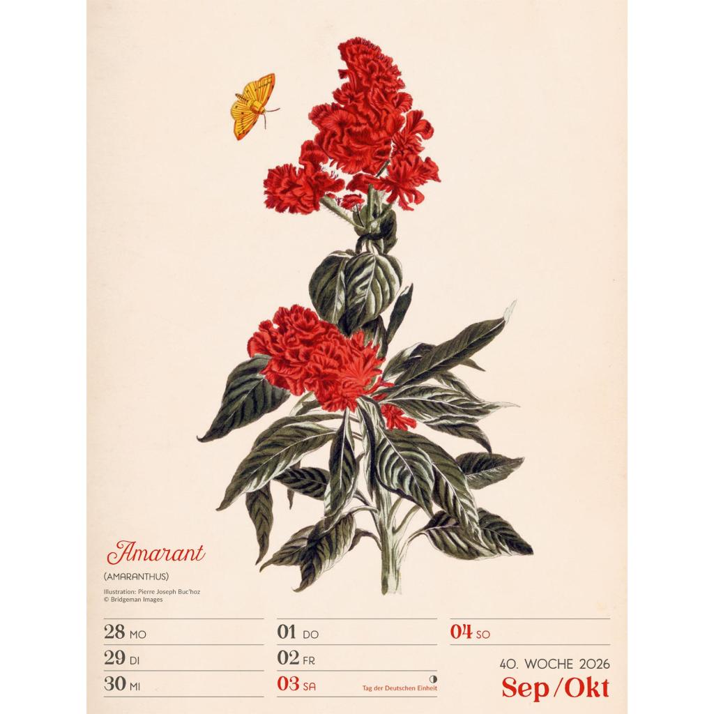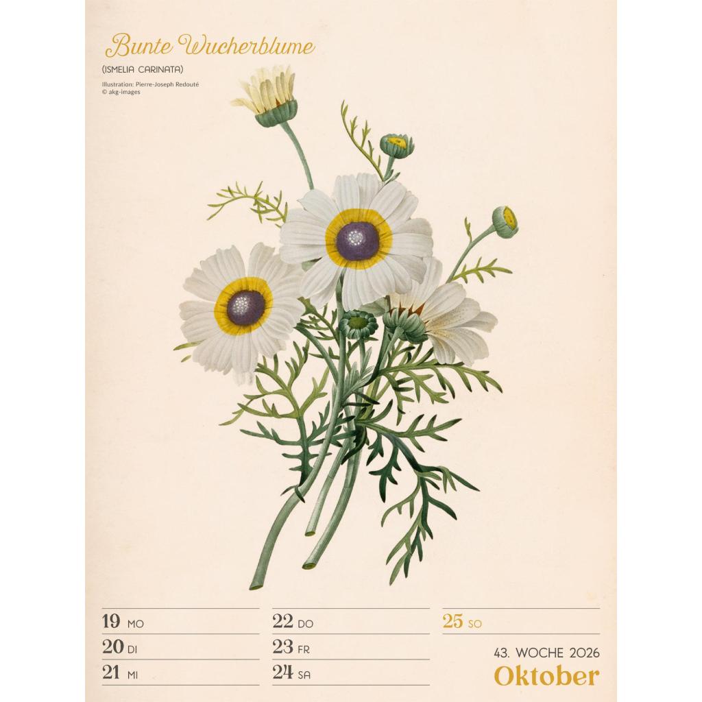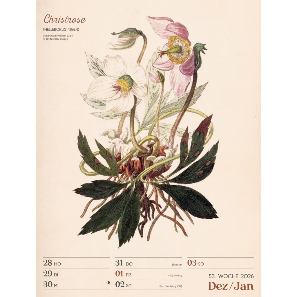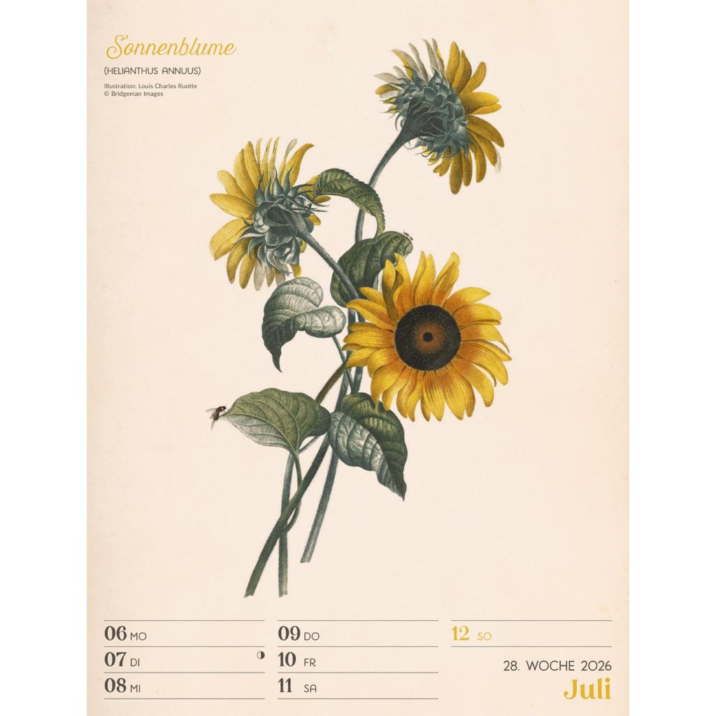 Informativer Blumen-Wochenkalender im Hochformat (25x33 cm) | Vintage & Retro | Rätsel & Sudokus