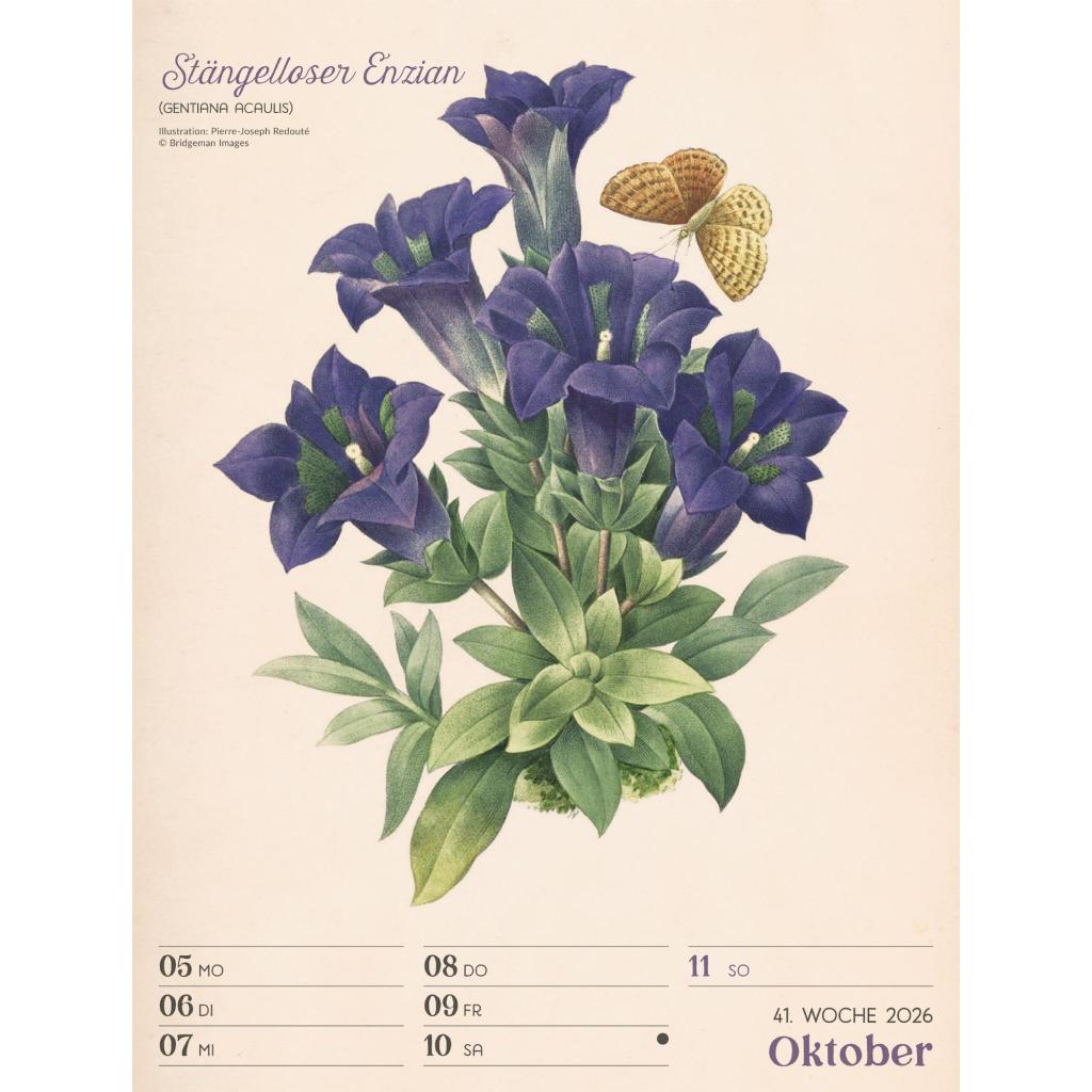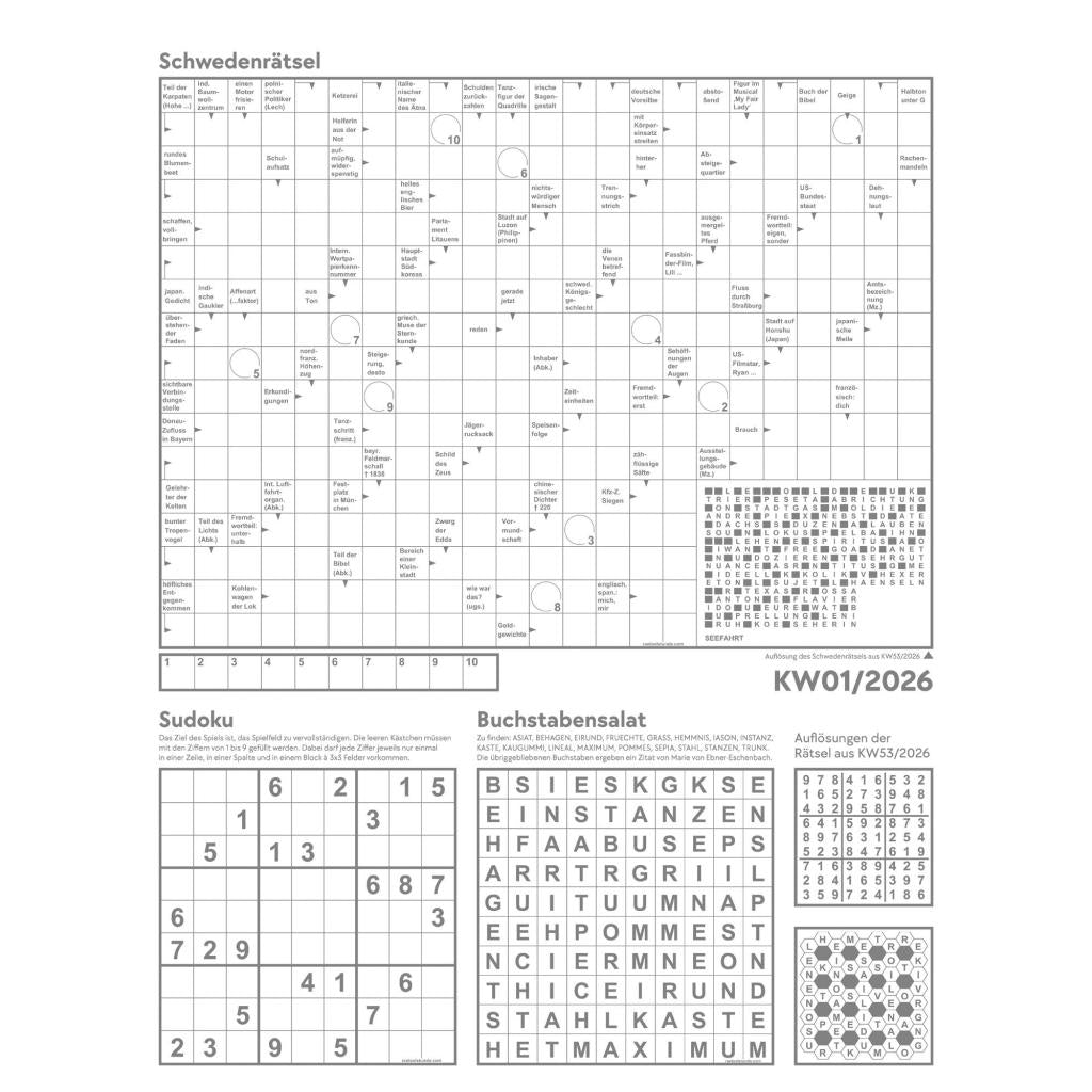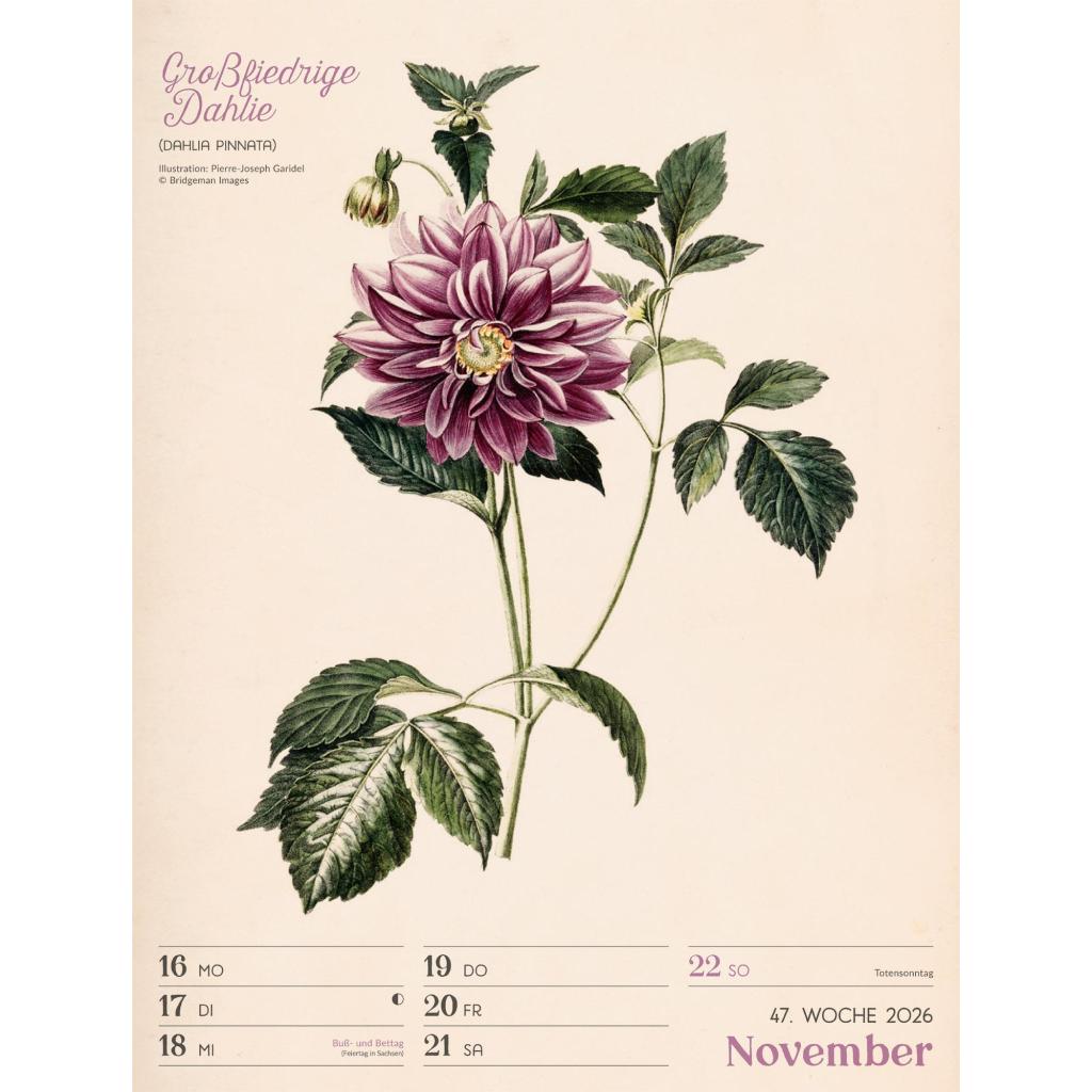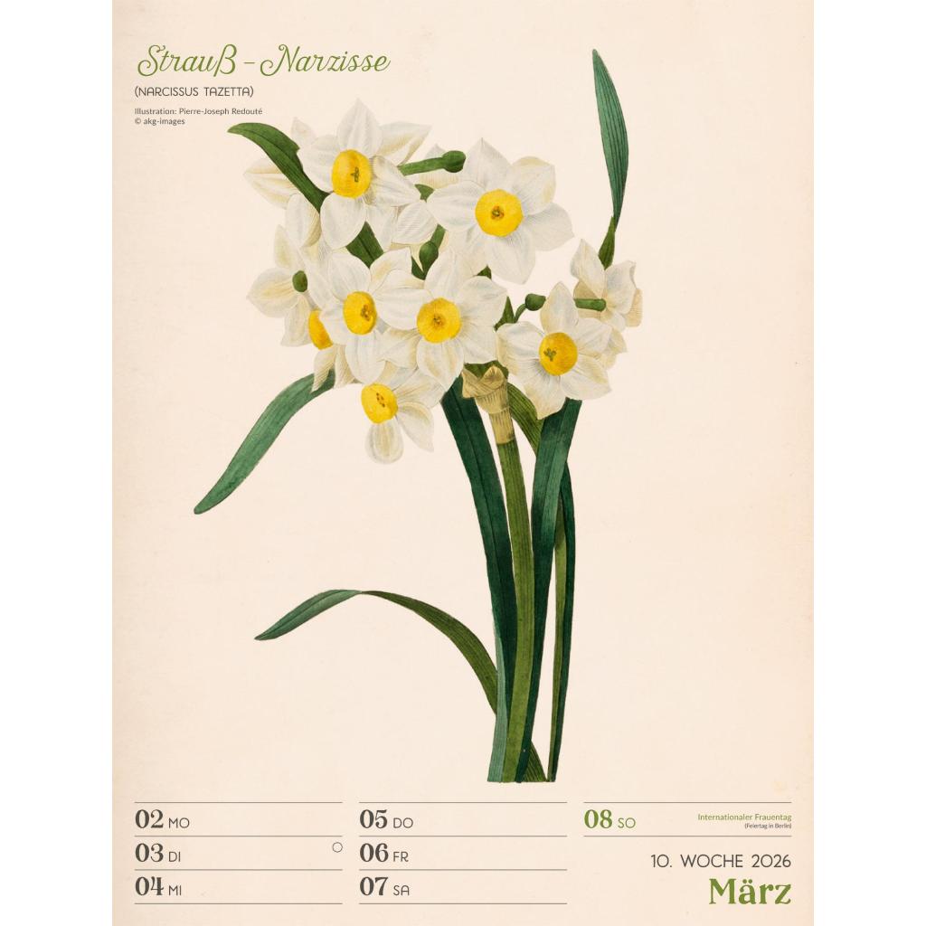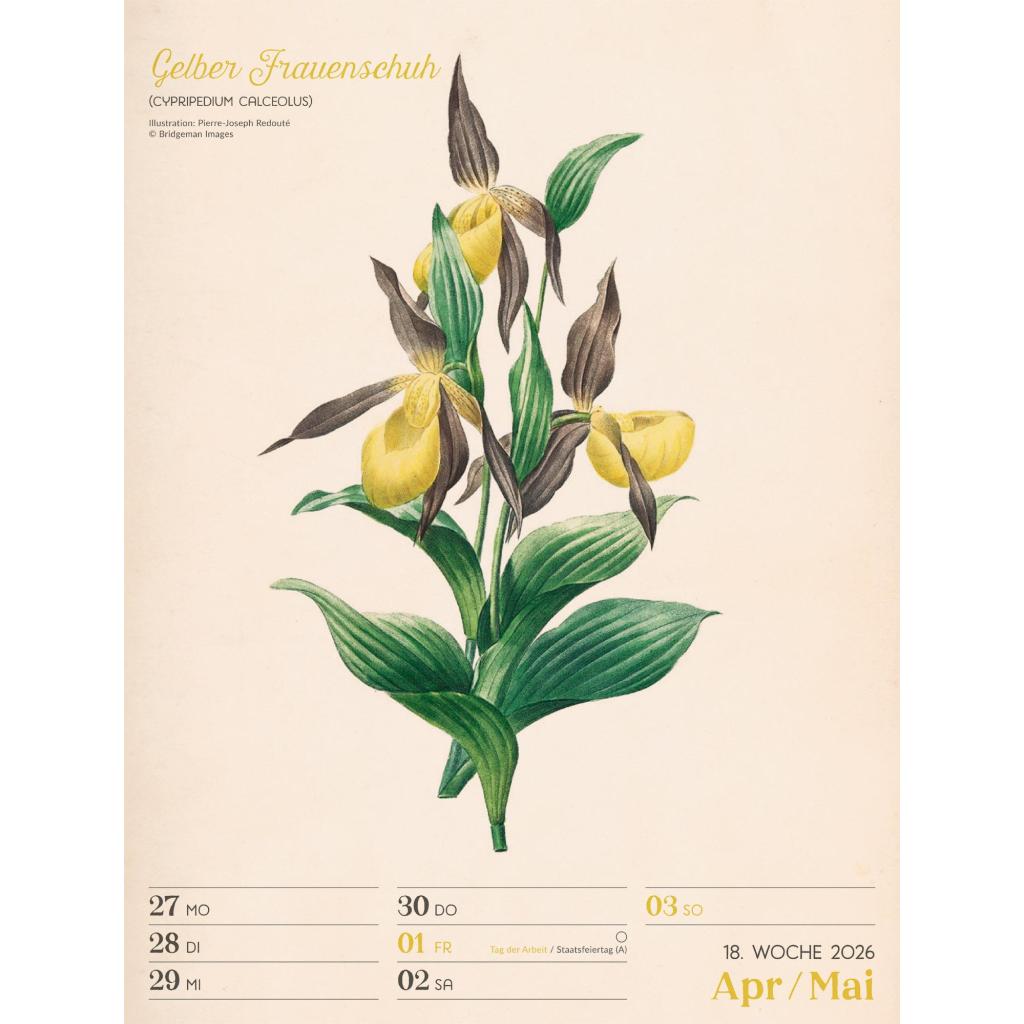 Informativer Blumen-Wochenkalender im Hochformat (25x33 cm) | Vintage & Retro | Rätsel & Sudokus