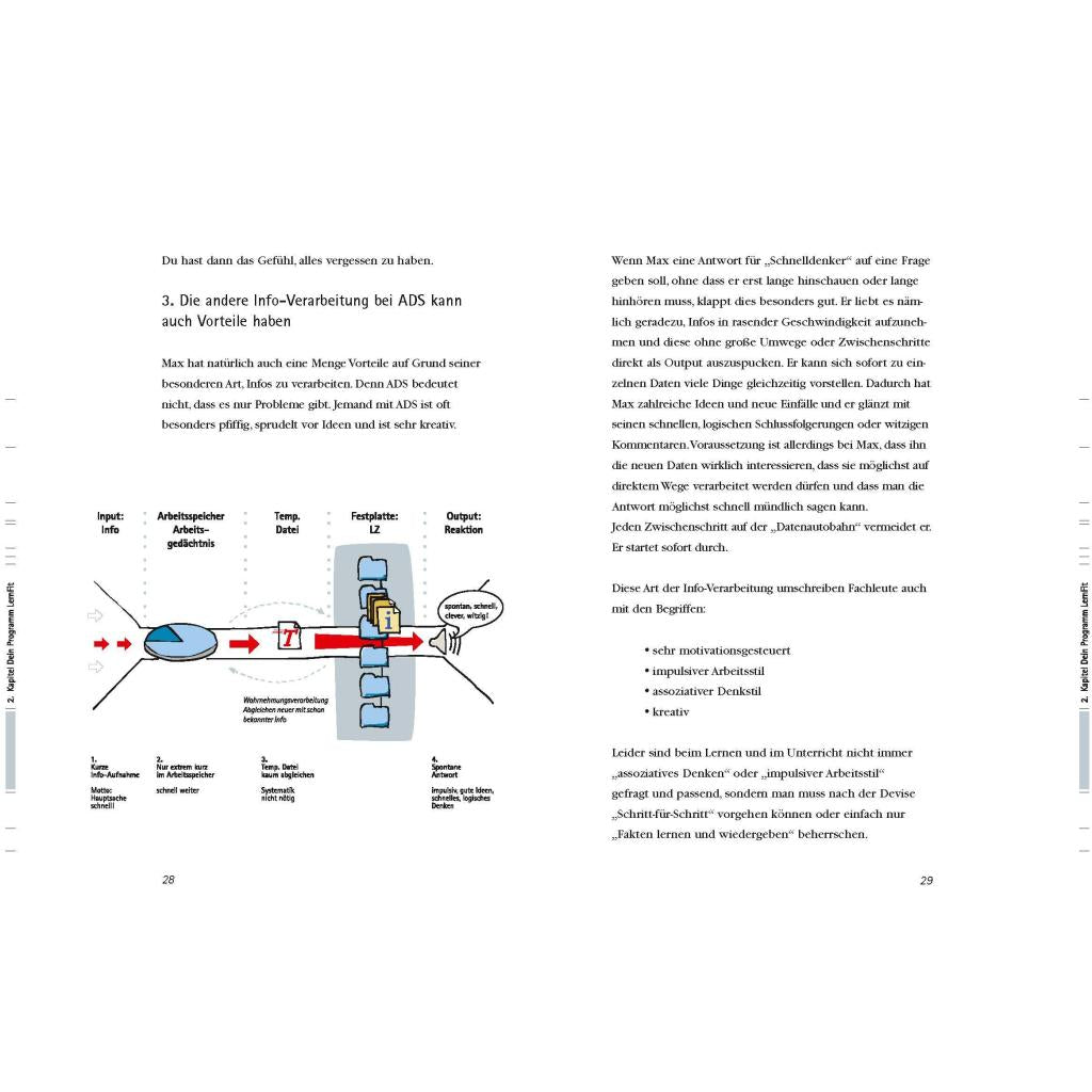 Mehr Konzentration und mehr Erfolg bei ADS: Lernstrategien und Motivation fürs Lernen! "Du könntest viel bessere Noten haben, wenn du dich konzentrieren würdest und nicht so faul wärst" - diesen Satz kennen viele Schüler:innen mit ADS oder ADHS nur zu gut. Obwohl sie intelligent und begabt sind, fällt es ihnen schwer, systematisch zu arbeiten. Aufschieberitis, Schulfrust und schlechte Noten sind die Folge. Doch damit ist jetzt Schluss! Dr. Elisabeth Aust und Dr. Petra-Marina Hammer kennen die Herausforderungen von Kindern mit ADS genau und geben in ihrem Ratgeber für Schülerinnen und Schüler wertvolle Methoden zum Zeitmanagement und für ADHS-Lernstrategien an die Hand. Das Buch bietet eine umfassende Anleitung, wie bei ADS die Konzentration gesteigert und die Motivation fürs Lernen gefördert werden kann. Für Schüler:innen und ihre Lernbegleiter:innen von der 5. bis zur 10. Klasse. - ADS und ADHS verstehen: Die Comicfiguren Clever & Co. vermitteln komplexe Themen spielerisch und leicht verständlich - Erprobtes Optimind-Konzept: Praktische Methoden, Checklisten und Lerntipps speziell für Schüler:innen mit ADS - Hausaufgaben und ADHS? Ein Kinderspiel mit dem Planer für Aufgaben und Klassenarbeiten - ADHS und Schule: Effektive Lernstrategien für alle Kinder - Ratgeber Lernen: Konzentrationsschwäche überwinden, Selbstbewusstsein des Kindes stärken, erreichbare Ziele setzen ADS und Schulprobleme? Nicht mit Clever & Co.! Ob es darum geht, die Merkfähigkeit zu verbessern, sich realistische Lernziele zu setzen oder Hausaufgaben und Freizeit zu koordinieren - das Lernbuch ADHS ist der perfekte Ratgeber für Schüler:innen, Eltern und Lehrpersonen, die wirksame Instrumente suchen, um das Lernen in der Sekundarstufe I zu fördern. Und um die Herausforderungen von Kindern mit ADHS im Unterricht erfolgreich zu meistern. Das Autorenduo zeigt: Schule und ADHS schließen Erfolg nicht aus - es kommt nur die richtigen Methoden an!