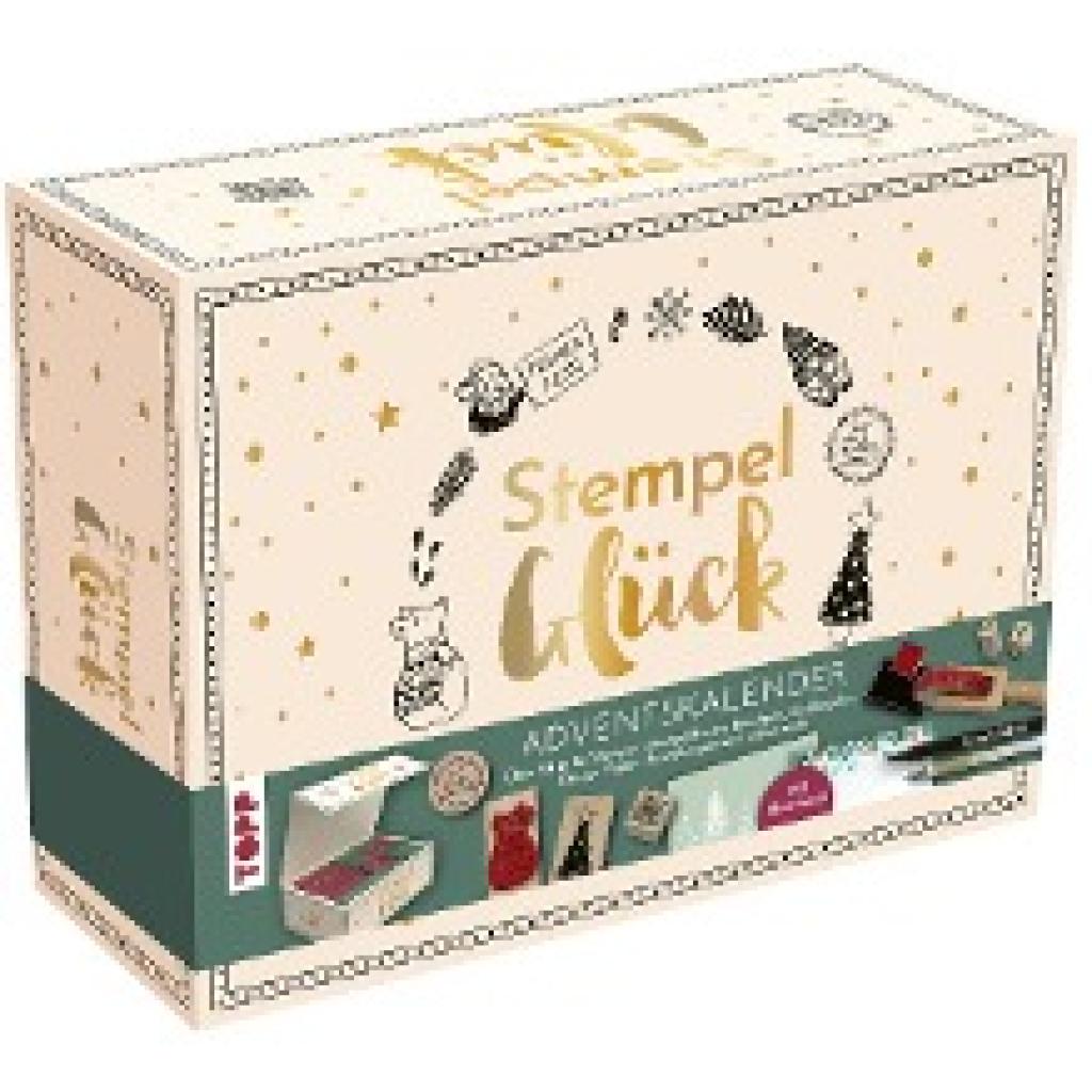 Box mit Magnetverschluss, Material für 24 Stempelprojekte, 29 Holzstempel, Buch (48 S., DIN A5, Softcover) uvm.