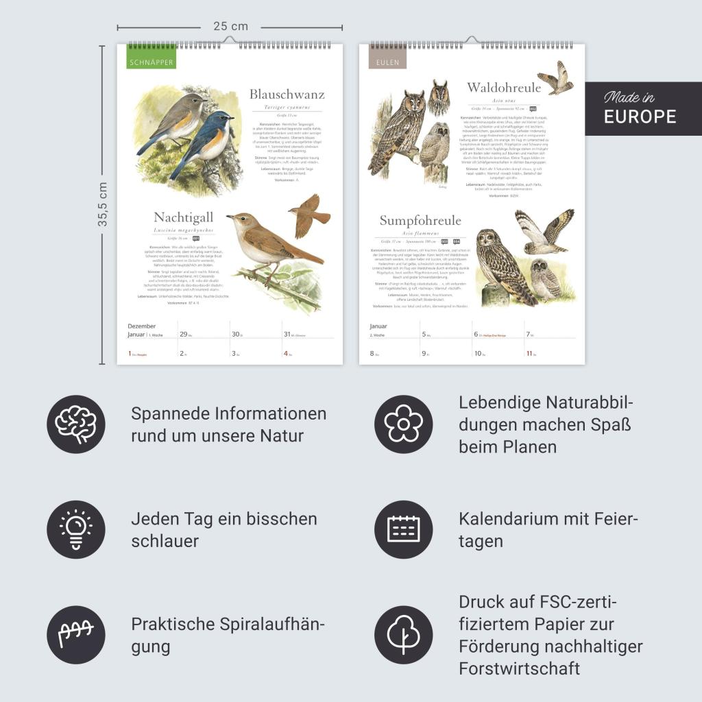 Der Kalender zum KOSMOS Naturführer. Die bunte Vogelwelt unserer Heimat im Wochenplaner 2026. Mit detaillierten Vogel-Zeichnungen und fundierten Informationen