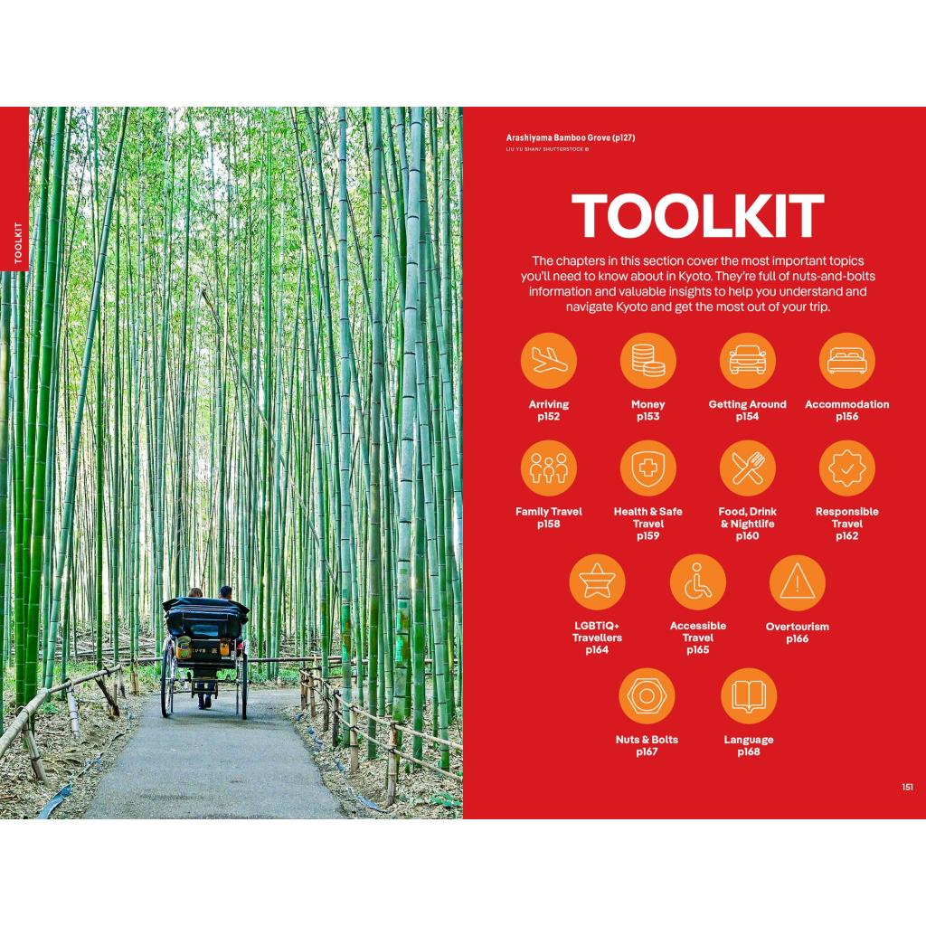 Lonely Planet's local travel experts reveal all you need to know to plan the trip of a lifetime to Kyoto. Discover Kyoto's most popular experiences and best kept secrets - neighbourhood by neighbourhood - from exploring the sprawling temple grounds of Ninna-ji during cherry-blossom season, to delving into the world of comics at the Kyoto International Manga Museum, and digging into lunch at Yoshikawa for a plate of the best tempura in the city. Build a trip to remember with Lonely Planet's Kyoto travel guide: Our classic guidDigital format provides you with the most comprehensive level of information for planning multi-week trips Updated with an all new structure and design so you can navigate Kyoto and connect experiences together with ease Create your ideal trip with exciting Perfect Day itineraries with suggestions of unmissable attractions and activities to match your passions, plus day trips from Kyoto so you can explore the surrounding areas Get fresh takes on must-visit sights including the gardens of Ginkaku-ji; Kyoto National Museum; and explore the sprawling temple grounds of Ninna-ji Special features on day trips from Kyoto, plus essays on Kyoto culture Expert local recommendations on when to go, eating, drinking, nightlife, shopping, accommodation, adventure activities, festivals, and more Essential information toolkit containing tips on arriving; transport; making the most of your time and money; LGBTIQ+ travel advice; useful words and phrases; accessibility; and responsible travel Connect with Kyoto culture through stories that delve deep into local life, history, and traditions Inspiring full-colour travel photography and maps including a pull out map of Kyoto Covers : Kyoto Station & South Kyoto; Downtown Kyoto; Imperial Palace & Around; Gion & Southern Higashiyama; Northern Higashiyama; Northwest Kyoto; Arashiyama & Sagano plus day trips to Nara; Osaka; Himeji; Kobe; Lake Biwa; Ohara; Kurama & Kibune; Miyama; Amanohashidate Create a trip that's uniquely yours and get to the heart of this extraordinary city with Lonely Planet's Kyoto.