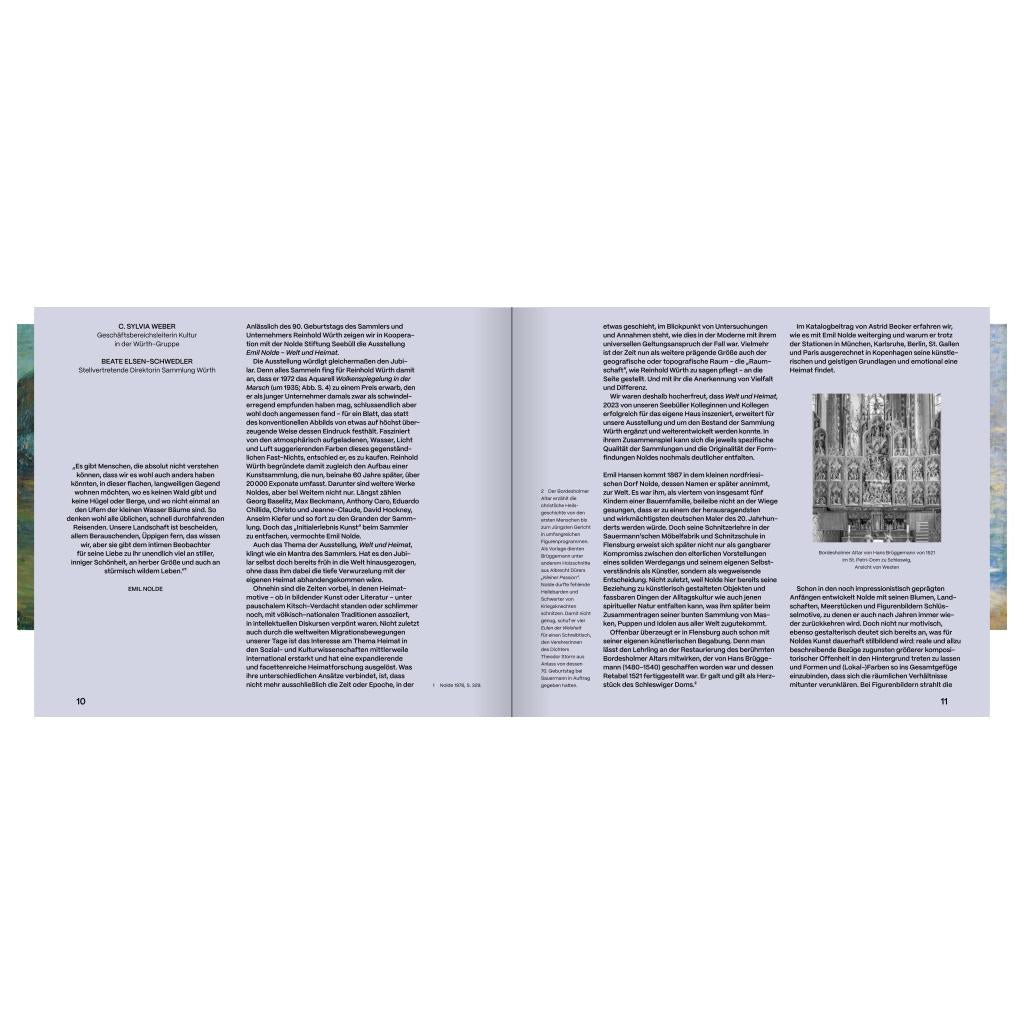 Emil Nolde ist zutiefst geprägt durch seine Heimat im deutschdänischen Grenzgebiet. Dramatische Landschaftsdarstellungen, aufwühlende Meeresbilder und leuchtende Blumengemälde wurden zu seinem Markenzeichen. Der Künstler weitet seine Sicht durch Reisen, zum Beispiel nach Italien, England, Frankreich, Skandinavien, Spanien und in die Schweiz. Die berühmte "Südseereise" führt das Ehepaar Nolde über Moskau, Sibirien, Korea, Japan und China in die "deutschen Schutzgebiete" Deutsch-Neuguinea. Die Landschaften, Meere und Blumen sowie die Menschen, denen Nolde begegnet, hält er in beeindruckenden Werken fest. Seine Erfahrungen bereichern nachhaltig die Sicht auf seine Heimat. Heimat ist mehr als ein geografischer Ort, Heimat ist ein Gefühl. Der Begriff steht für die eigene Identität. Was sagt uns der Blick des Künstlers auf Welt und Heimat und welche Bedeutung hat Heimat heute? Inklusive Beileger mit den Katalogtexten in englischer Sprache.