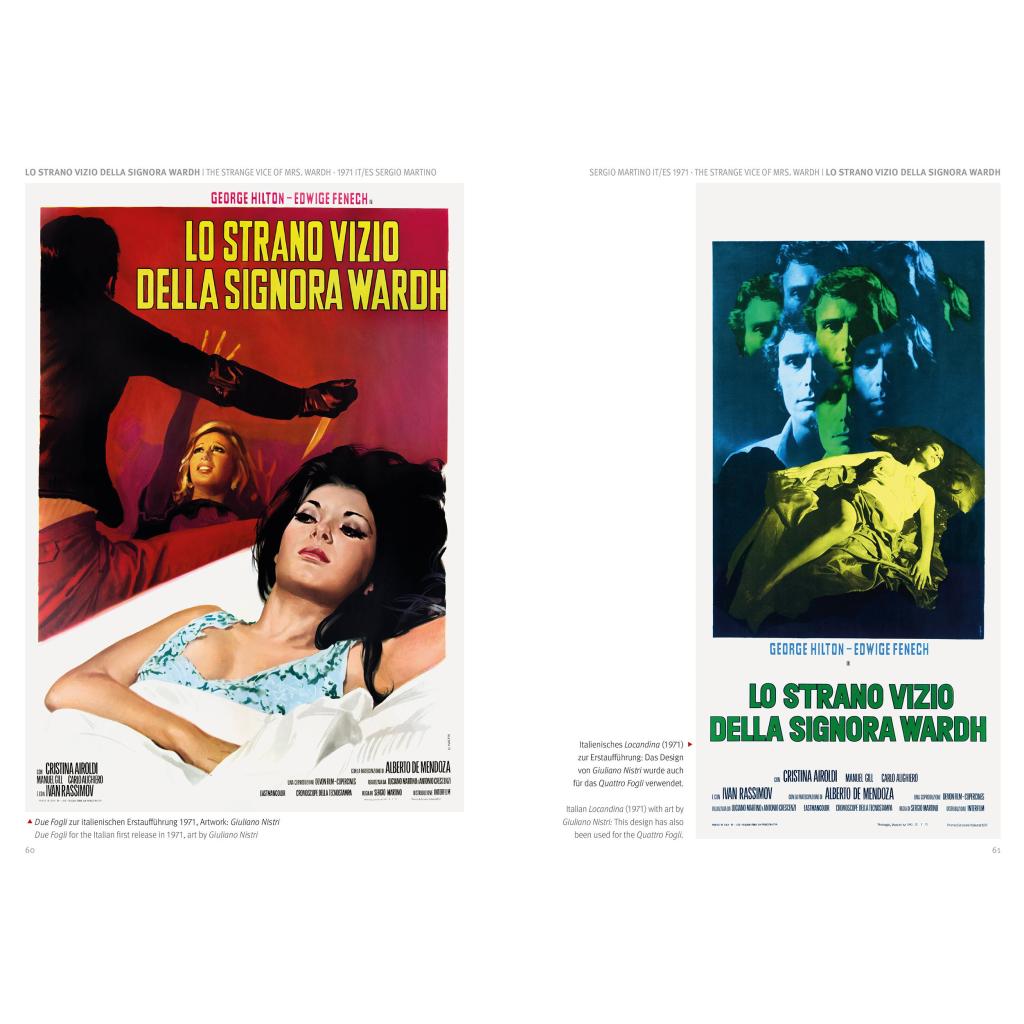 Der italienische Giallo war eines der stilistisch aufregendsten Genres seiner Zeit, und die Experimentierfreudigkeit seiner Macher spiegelt sich auch in der Gestaltung der Kinoplakate wider, mit denen diese Filme beworben wurden. Anfang der 1970er Jahre explodierte das Giallo-Genre geradezu, nicht zuletzt durch den großen Erfolg von Dario Argentos Regiedebüt L'UCCELLO DALLE PIUME DI CRISTALLO (DAS GEHEIMNIS DER SCHWARZEN HANDSCHUHE). In kurzer Zeit entstand eine große Anzahl von Titeln, darunter zahlreiche Klassiker wie Sergio Martinos LO STRANO VIZIO DELLA SIGNORA WARDH (DER KILLER VON WIEN) und LA CODA DELLO SCORPIONE (DER SCHWANZ DES SKORPIONS), Lucio Fulcis UNA LUCERTOLA CON LA PELLE DI DONNA, Mario Bavas ECOLOGIA DEL DELITTO (IM BLUTRAUSCH DES SATANS) und eben auch Dario Argentos "Tier-Trilogie", zu der neben dem bereits erwähnten L'UCCELLO DALLE PIUME DI CRISTALLO auch IL GATTO A NOVE CODE (DIE NEUNSCHWÄNZIGE KATZE) und 4 MOSCHE DI VELLUTO GRIGIO (VIER FLIEGEN AUF GRAUEM SAMT) gehören. Daneben gab es natürlich viele kleine und obskure Filme, von denen einige heute fast in Vergessenheit geraten sind. Diesen Filmen, genauer gesagt den dazugehörigen Plakaten, widmen wir uns in GIALLO MOVIES POSTERS Volume 2: 1970 - 1971. Auf 232 Seiten beinhaltet das Buch fast 300 hochwertige Reproduktionen seltener Kinoplakate und spannende Hintergrundinfos.
