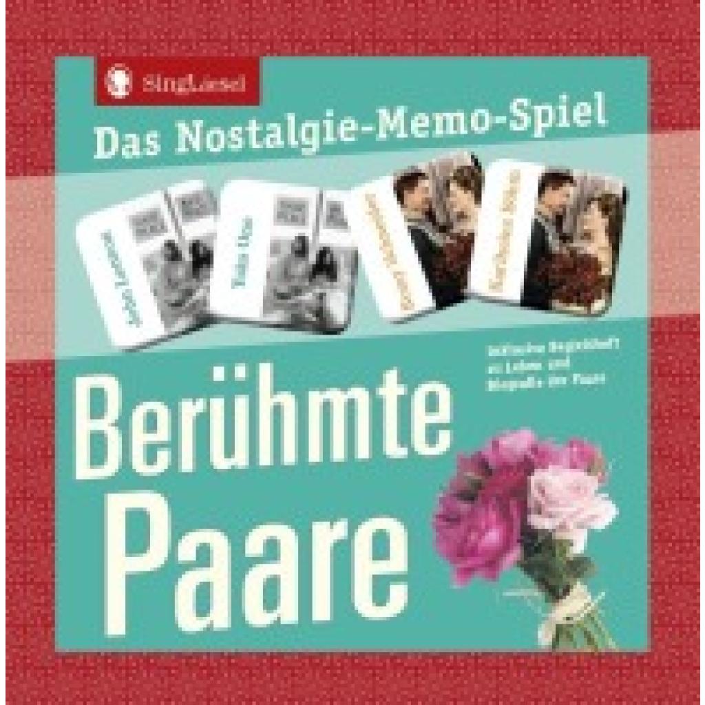 Berühmte Paare - Das Memo-Spiel für Senioren Jede Generation hat ihre eigenen Stars. In diesem Memo-Spiel für Senioren sind berühmte und beliebte Paare aus dem 20. Jahrhundert versammelt. Finden Sie bei diesem vergnüglichen Memo-Spiel den jeweiligen Partner, um das Paar zu vervollständigen. Von Scarlett O'Hara und Rhett Butler bis hin zu Yoko Ono und John Lennon. Das Nostalgie-Memo-Spiel ist das beliebte Gesellschaftsspiel für alle mit ein paar Jahrzehnten Lebenserfahrung. Die Memo-Spiele sind eine tolle Geschenk-Idee für Senioren. Auch für Menschen mit Demenz. Wie bei allen SingLiesel-Memo-Spielen mit einem umfassenden Begleitheft, das an die besonderen, schönen oder tragischen Momenten im Leben der Stars erinnert.