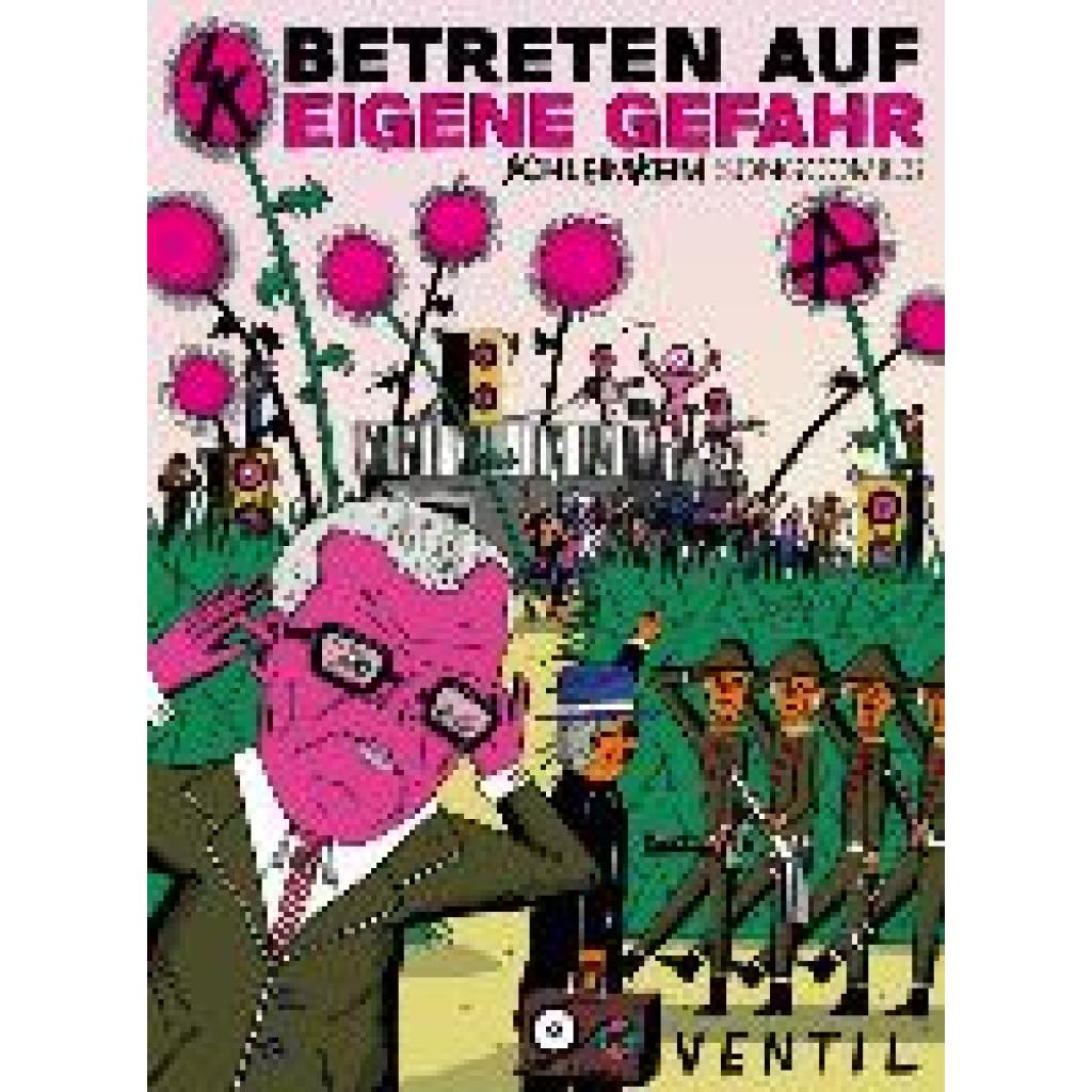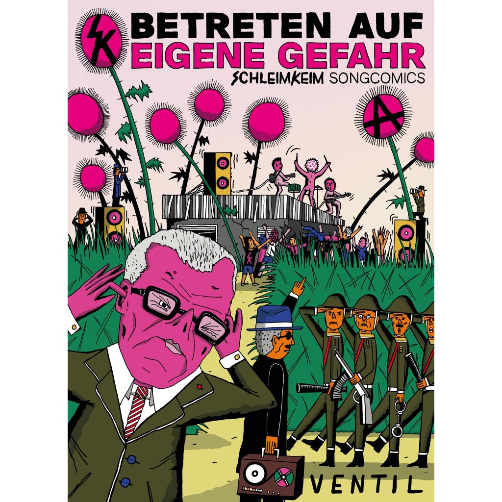 Der Songcomic 'Betreten auf eigene Gefahr' setzt der stilprägenden DDR-Punkband Schleimkeim aus dem thüringischen Stotternheim ein Denkmal. Acht Zeichner:innen haben jeweils einen Schleimkeim-Song in Bilder verwandelt, die immer auch DDR-Geschichte und die Punk-Subkultur abbilden. Im Osten war Punk eine hochpolitische Angelegenheit, Bands wurden wegen vermeintlich staatsfeindlicher Inhalte verboten, Musiker kamen für die Texte ins Gefängnis. Punk war in der DDR illegal. Einige der Zeichner:innen stammen aus der Subkultur der DDR und erlebten die Band vor 1989, andere fanden einen späteren Zugang. Darüber berichten sie im Buch. Was alle vereint, ist die Liebe zu Krawall und Remmidemmi. Der harte Sound von Schleimkeim schwebte über ihnen, als sie die Comics schufen. Frank Willmann hat für 'Betreten auf eigene Gefahr' zudem einige weiterführende Texte zur Band verfasst. Als der Bandleader und Spiritus Rector Dieter 'Otze' Ehrlich 2005 in der geschlossenen Psychiatrie verstirbt, wird es für ein paar Jahre ruhig um die Band. Seit 2008 geben die verbliebenen Bandmitglieder wieder gelegentlich Konzerte. So auch 2021 vor ausverkauftem Haus in Berlin (SO36) und Dresden (Chemiefabrik).