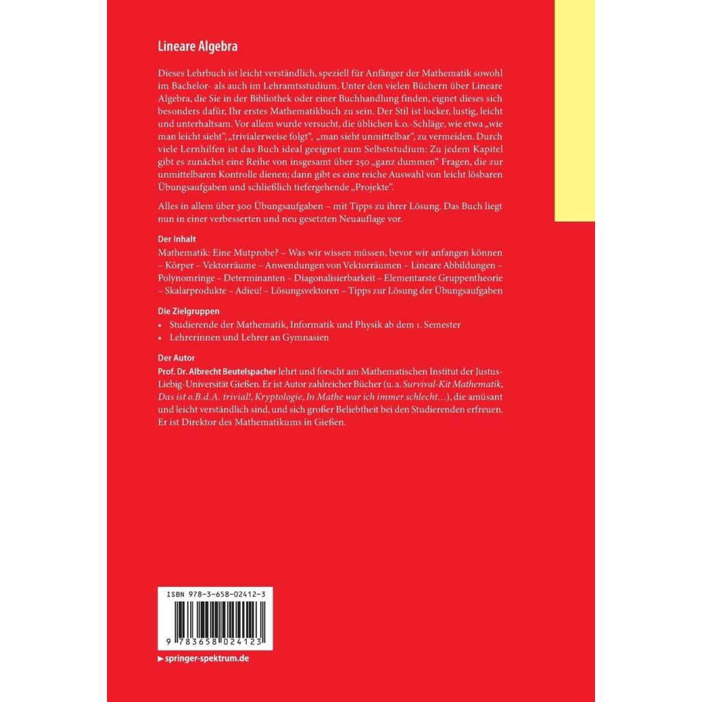 | Keyword: | Determinaten;Diagonalisierbarkeit;Gruppentheorie;Körper;Lineare Abbildungen;Lineare Algebra;Lösungsvektoren;Polynomringe;Skalarprodukte;Vektorräume |