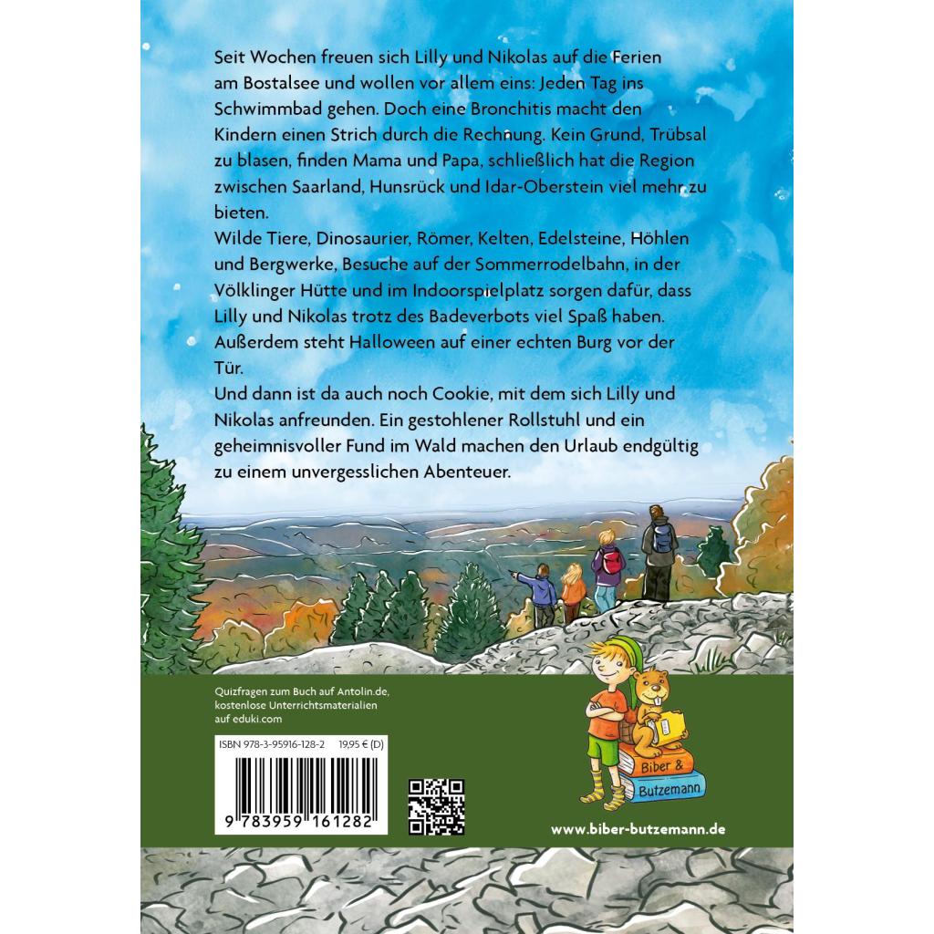 Seit Wochen freuen sich Lilly und Nikolas auf die Ferien am Bostalsee und wollen vor allem eins: Jeden Tag ins Schwimmbad gehen. Doch eine Bronchitis macht den Kindern einen Strich durch die Rechnung. Kein Grund, Trübsal zu blasen, finden Mama und Papa, schließlich hat die Region zwischen Saarland, Hunsrück und Idar-Oberstein viel mehr zu bieten. Wilde Tiere, Dinosaurier, Römer, Kelten, Edelsteine, Höhlen und Bergwerke, Besuche auf der Sommerrodelbahn, in der Völklinger Hütte und im Indoorspielplatz sorgen dafür, dass Lilly und Nikolas trotz des Badeverbots viel Spaß haben. Außerdem steht Halloween auf einer echten Burg vor der Tür. Und dann ist da auch noch Cookie, mit dem sich Lilly und Nikolas anfreunden. Ein gestohlener Rollstuhl und ein geheimnisvoller Fund im Wald machen den Urlaub endgültig zu einem unvergesslichen Abenteuer. Ferienabenteuer für Kinder und Reiseführer für Familien: die Kinderbuch-Serie "Lilly und Nikolas" Wenn die Geschwister Lilly und Nikolas mit ihren Eltern in den Urlaub fahren, erleben sie die schönsten Abenteuer, staunen über Dinge aus vergangenen Tagen, lösen Rätsel und manchmal auch einen kleinen Kriminalfall. Dabei entdecken sie jedes Mal Sehenswürdigkeiten und Ausflugsziele, die Kindern wirklich Spaß machen. Auf ihren Touren erfahren sie so ganz nebenbei viel über Land und Leute und die Geschichte ihrer Urlaubsregion! - Feriengeschichte voller Spaß, Rätsel und Abenteuer für Kinder - Spannend und informativ: Urlaubslektüre und Reiseführer in einem Kinderbuch - Zum Selbstlesen ab der 3. Klasse oder zum gemeinsamen Lesen in der Familie - Die schönsten Urlaubsziele für Familien und Tipps für Ausflüge mit Kindern - Zoos, Freizeitparks und Museen, die Kinder begeistern - Geeignet für Buchvorstellungen und für die Leseförderung mit ANTOLIN - Kann auch im Heimat- und Sachunterricht in der Grundschule eingesetzt werden Ob Urlaub in Deutschland oder den Nachbarländern, ob Sommerferien am Meer oder Herbsturlaub in den Bergen: Diese Kinderbücher machen Lust, selbst die Koffer zu packen und loszuziehen!