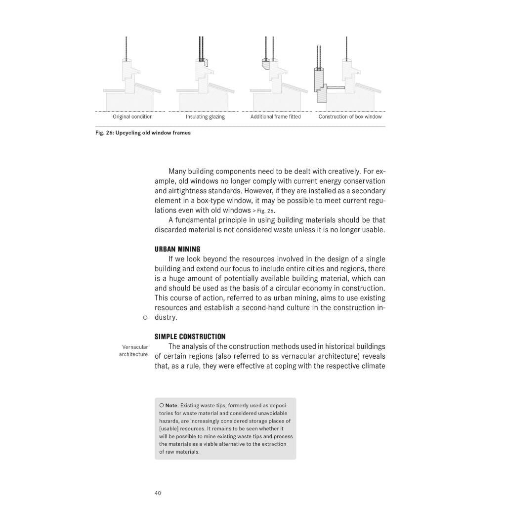 The construction sector currently accounts for a high proportion of CO 2 emissions and gray energy use. This will have to change fundamentally if we are to prevent catastrophic climate change and make urban planning and construction fit for the future. In addition to a paradigm shift in how architects work, we need to rethink how they are trained in higher education. Based on a lifecycle approach and an awareness of resource consumption, this volume in the Basics series explains a wide range of climate-friendly concepts in an easy-to-understand way, inspiring readers to take a closer look at solutions and new approaches in their daily practice. The key factors involved in the various planning stages of buildings are presented and placed in the context of the overall planning. Explains a range of current sustainability concepts Foundational knowledge for all students of architecture Interdisciplinary and networked consideration of challenges and solutions in the area of climate protection