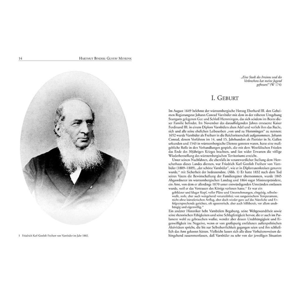 Mit Hartmut Binders jüngstem Werk liegt erstmal eine umfassende Dokumentation zum Leben und Werk Gustav Meyrinks vor. Der große Satiriker und Schöpfer bedeutender phantastischer Literatur wird damit von den vielen sich um ihn rankenden Legenden befreit, die seine Gestalt bisher verschleierten, und anhand einer Fülle bisher weitgehend unbekannter Schriftzeugnisse und Archivmaterialien ins Licht verbürgter Tatsachen gestellt. Die allein auf Fakten gegründete, um zahlreiche historische Abbildungen ergänzte, auf langjährigen Recherchen beruhende Untersuchung zeigt den Dandy, Sportsmann, Bankier, Mystiker und Schriftsteller Meyrink in allen Phasen seines Lebens, das ihn von München über Hamburg, Prag, Wien und Montreux wieder zurück in die bayerische Metropole und schließlich an den Starnberger See führte. Besonders ausführlich sind die in der alten Kaiserstadt an der Moldau verbrachten Jahre Meyrinks dokumentiert, denn ihr Legenden- und Figurenschatz bildet den Nährboden für seinen Golem -Roman, der ihm zu Weltruhm verhalf. Aber sie war auch Schauplatz eines von ihm verursachten Gesellschaftsskandals und eines Strafprozesses, der ihn in Untersuchungshaft brachte, ihn finanziell ruinierte und ihm Stoff für seine Simplicissimus -Beiträge lieferte, mit denen er sich als Autor etablierte. Und liebevoll, nicht wie zum ersten Mal, aber schwelgend in Erinnerungen, lesen wir noch einmal alles, was uns damals aufrührte. Jeder hatte seinen eigenen Meyrink, jeder wußte neue Schönheiten zu berichten, die der andre noch gar nicht entdeckt hatte, und wenn wir uns abends nach Hause standen, brachen wir an jeder Straßenecke in ein Geheul aus (darob die Bürger erwachten), weil uns wieder etwas Neues eingefallen war von diesem Teufelskerl. Kurt Tucholsky im Januar 1914 in der Schaubühne