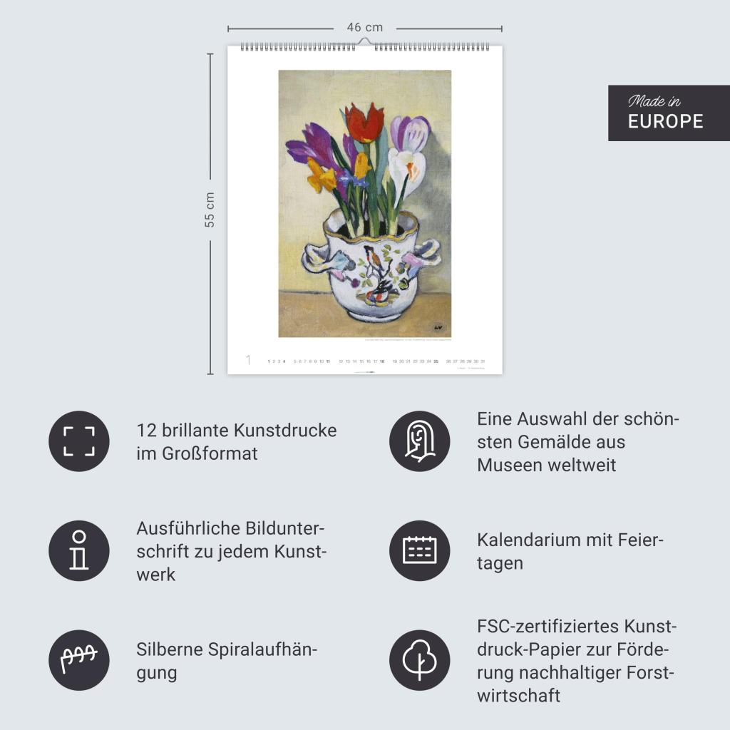 Farbenfroher Kunstkalender im Großformat: Bunte Blumen-Kunst, die nie verwelkt! Großer Wand-Kalender für den Farbtupfer in jedem Zimmer. Großformat 46x55 cm