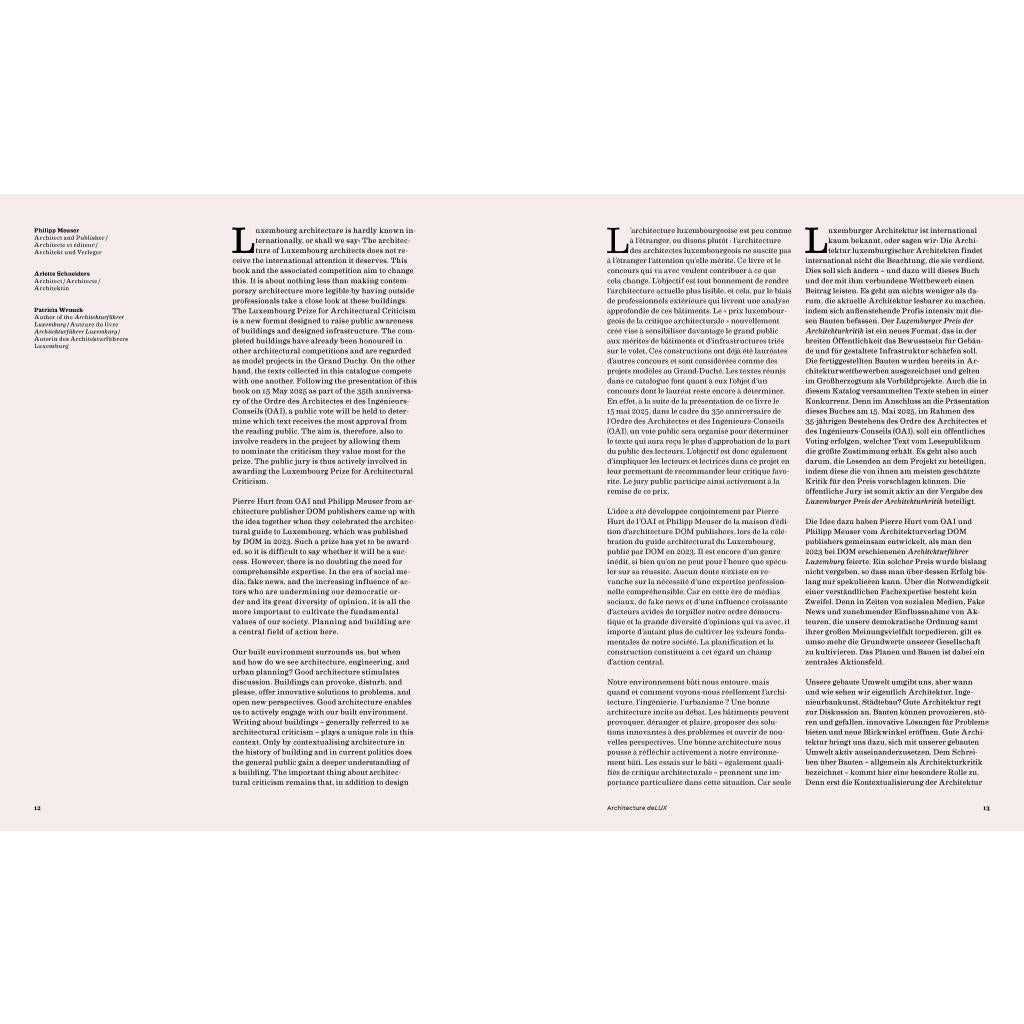 The Critics' View of Contemporary Architecture, Engineering, and Urbanism in Luxembourg / Architecture contemporaine, ingénierie et urbanisme au Luxembourg contextualisés par des critiques / Architektur, Ingenieurwesen und Urbanismus in Luxemburg aus der Sicht europäischer Kritiker