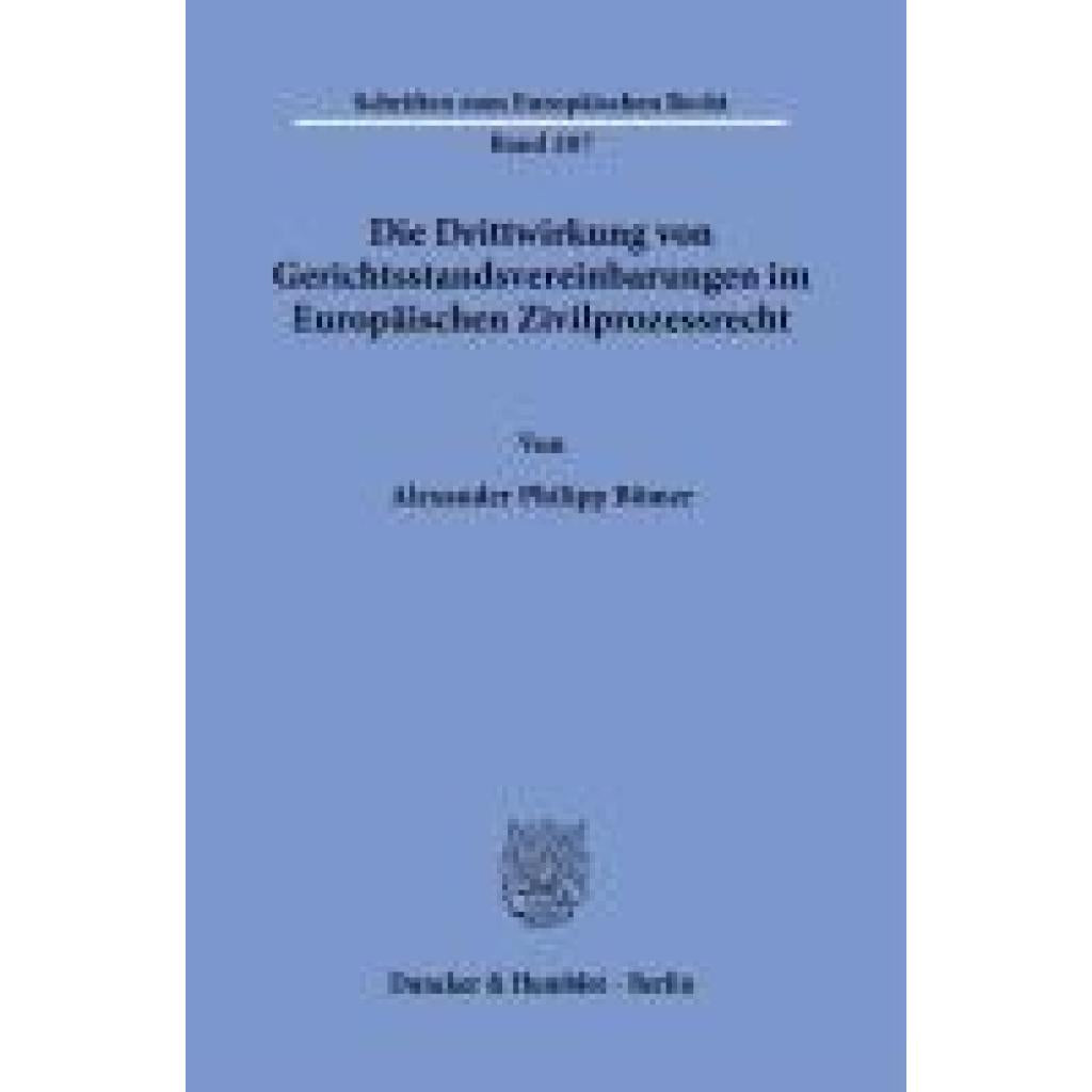 »The Third-party Effect of Jurisdiction Agreements in European Civil Procedure Law«: If a third party is involved, the parties still have the interest to foresee the jurisdiction in international legal relations. The effect of a jurisdiction agreement must therefore also extend to third parties. The aim of the work is to point out the problems arising from the intertwining of substantive and procedural legal relationships and to contribute to a legally secure autonomous system of the third-party effects of jurisdiction agreements.