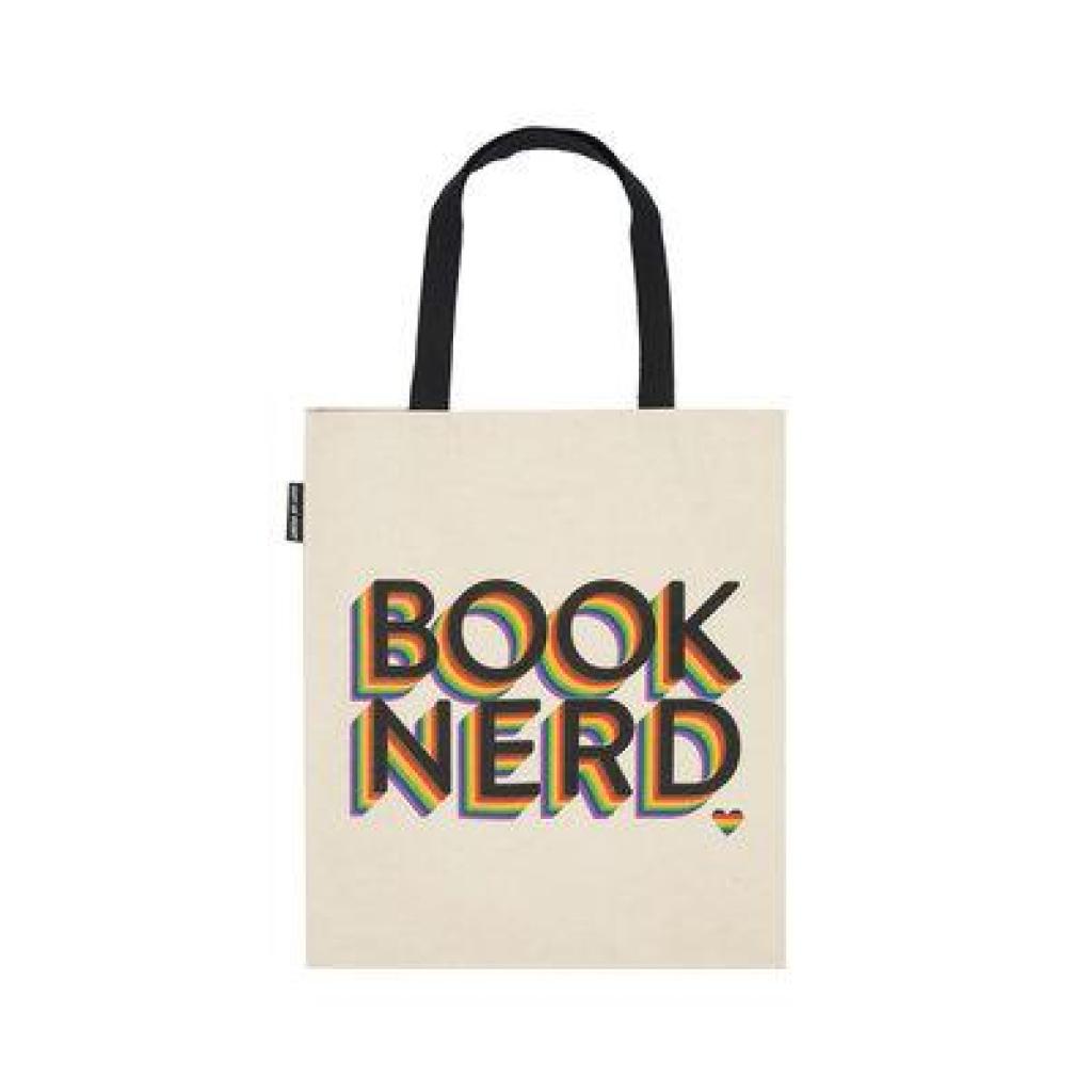Show your book nerd pride with this fabulous tote! Book Nerd is an Underlined by Out of Print collaboration. Product Details ¿ 100% cotton canvas ¿ Inner pocket ¿ Flat tote ¿ 14" w x 15.25" h ¿ 9" strap (hanging) ¿ Made in the USA