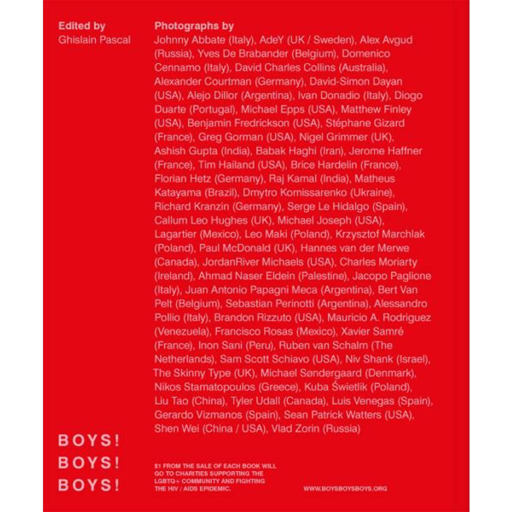 Aktuelle Fotografien von mehr als 60 queeren und schwulen internationalen Fotografen Das neueste BOYS! BOYS! BOYS!-Buch präsentiert Arbeiten von rund 60 Fotografen aus rund 30 Ländern, darunter China, Indien, Iran, Polen und Russland, wo die Rechte Homosexueller heute noch unterdrückt werden und queere Menschen unter ständiger Bedrohung leben. BOYS! BOYS! BOYS!, ins Leben gerufen von The Little Black Gallery und kuratiert von Ghislain Pascal, widmet sich der Verbreitung von queerer und schwuler Fotografie. Der erste Band von BOYS! BOYS! BOYS! erschien 2019, der zweite folgte 2020, beide waren rasch vergriffen. Ein Teil des Verkaufserlöses dieses Bands geht an Organisationen, die die LGBTQ+ Community unterstützen und HIV / AIDS bekämpfen. Fotografen: AdeY, Johnny Abbate, Alex Avgud, Yves De Brabander, Domenico Cennamo, David Charles Collins, Alexander Courtman, David-Simon Dayan, Alejo Dillor, Ivan Donadio, Diogo Duarte, Michael Epps, Matthew Finley, Stéphane Gizard, Greg Gorman, Ashish Gupta, Jerome Haffner, Babak Haghi, Tim Hailand, Brice Hardelin, Florian Hetz, Serge Le Hidalgo, Raj Kamal, Matheus Katayama, Dmitry Komissarenko, Richard Kranzin, Leo Maki, Krzysztof Marchlak, Paul McDonald, Juan Antonio Papagni Meca, Charles Moriarty, Bert Van Pelt, Sebastian Perinotti, Alessandro Pollio, Xavier Samre, Michael Sondergaard, Tyler Udall, Ruben van Schalm, Luis Venegas, Gerardo Vizmanos, Shen Wei et al.