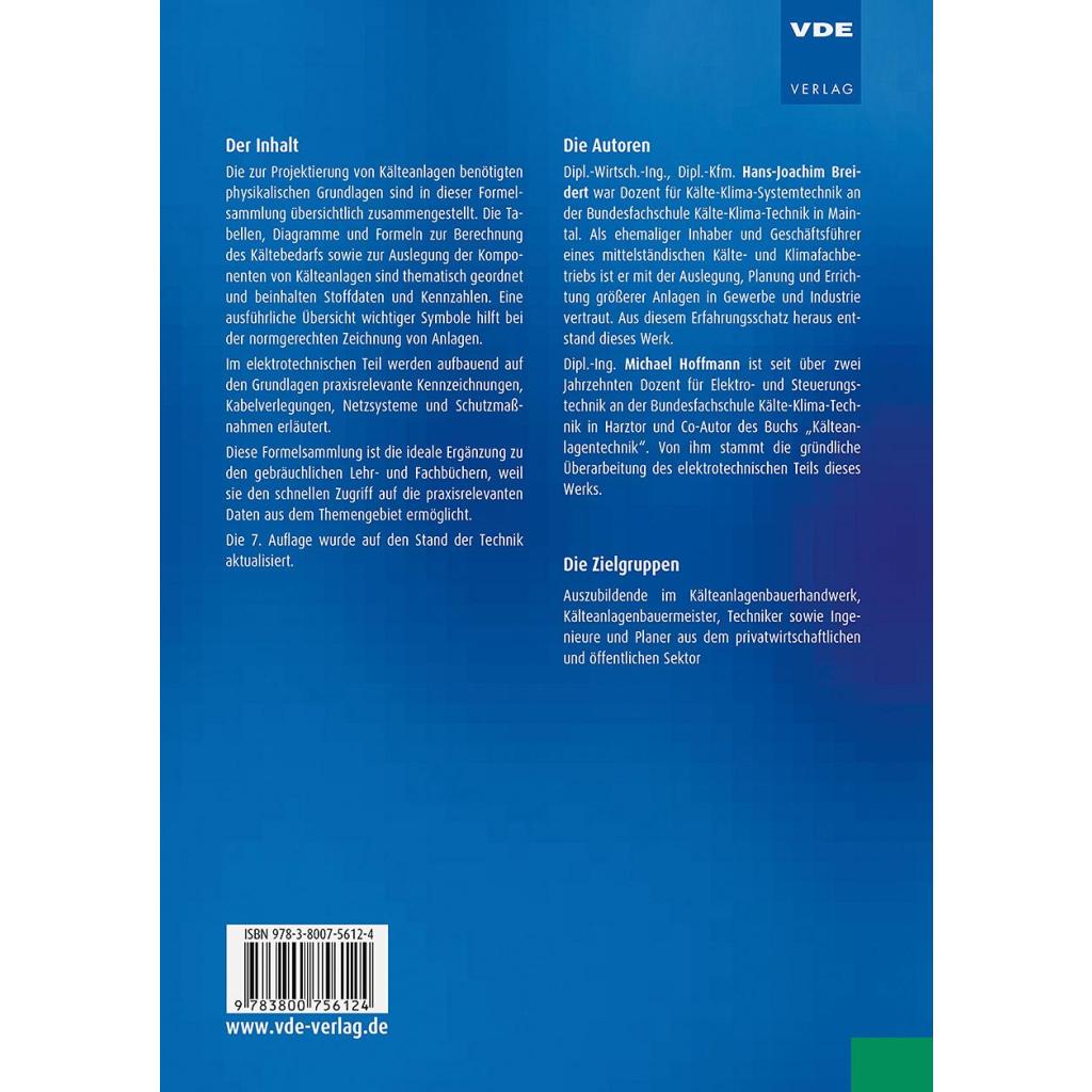 Die zur Projektierung von Kälteanlagen benötigten physikalischen Grundlagen sind in dieser Formelsammlung übersichtlich zusammengestellt. Die Tabellen, Diagramme und Formeln zur Berechnung des Kältebedarfs sowie zur Auslegung der Komponenten von Kälteanlagen sind thematisch geordnet und beinhalten Stoffdaten und Kennzahlen. Eine ausführliche Übersicht wichtiger Symbole hilft bei der normgerechten Zeichnung von Anlagen. Im elektrotechnischen Teil werden aufbauend auf den Grundlagen praxisrelevante Kennzeichnungen, Kabelverlegungen, Netzsysteme und Schutzmaßnahmen erläutert. Diese Formelsammlung ist die ideale Ergänzung zu den gebräuchlichen Lehr- und Fachbüchern, weil sie den schnellen Zugriff auf die praxisrelevanten Daten aus dem Themengebiet ermöglicht. Die 7. Auflage wurde auf den Stand der Technik aktualisiert.