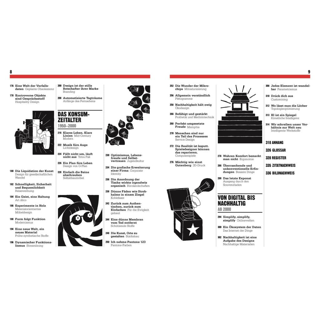| Keyword: | Designgeschichte; Design Epochen; Designgeschichte Buch; Buch über Design; Big Ideas; Art Deco; Art Nouveau; Bauhaus; Futurismus; Historismus; Deutscher Werkbund; Maximalismus; Neogotik; Farbtheorie; Beleuchtungsdesign; Industriedesign; Informationsdesign; Ökodesign; Sport-Branding; Design Katalog; Corporate Identity; Markenbildung; Visual Merchandising; Online Design; Straßenbild; Design Nachhaltigkeit; Design KI; Pantone Farben; Sans Serif; Weltausstellung; Massenproduktion; Nachhaltigkeit; Camouflage-Muster; Ford Modell T; Arrangement Design; Ästhetik Design; Kunsthandwerk; Kunsthandwerk Design; Holzschnitt; Intelligente Materialien; Dekoration; Ergonomie; Piktogramme |