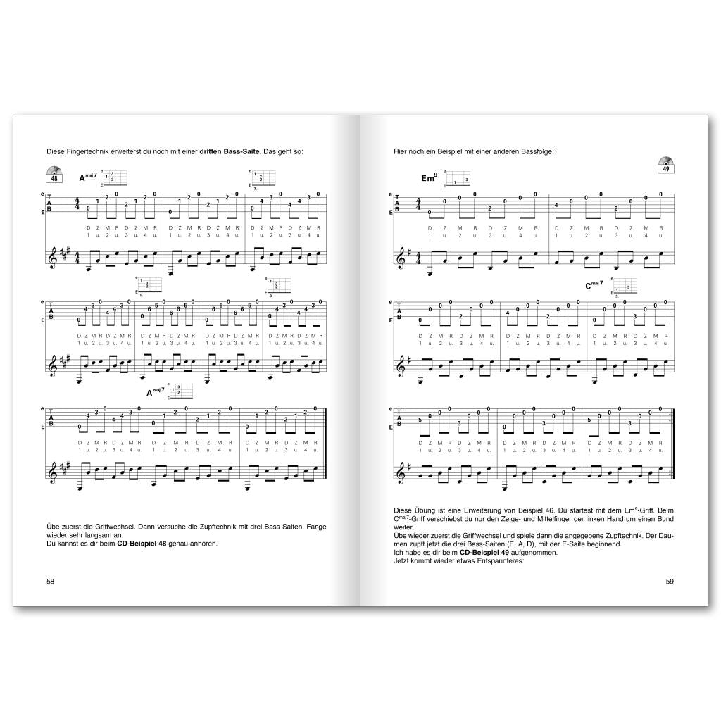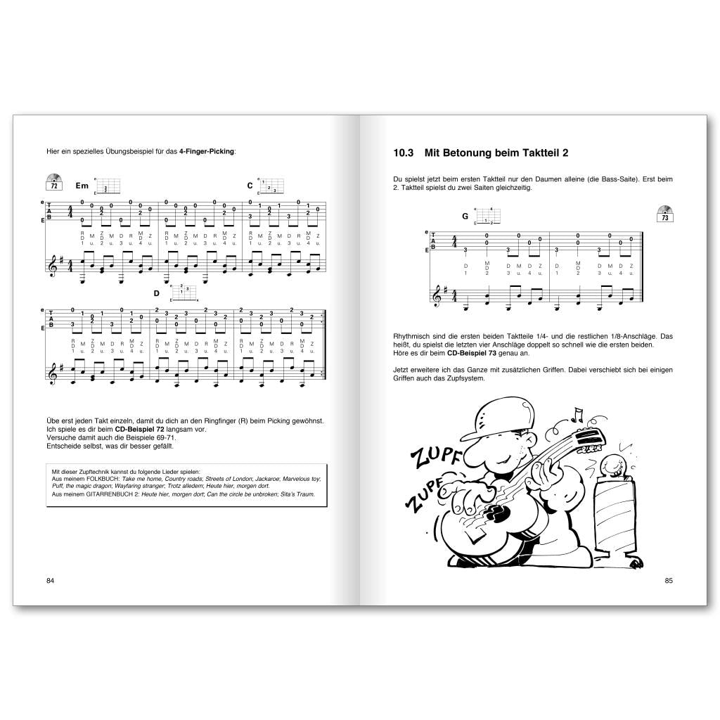 Von spielend leicht bis blitzschnell. Grundlegendes Lehrbuch mit allen bekannten Zupftechniken des Pop, Folk, Rock und Blues und der Klassik. Für Einsteiger und Aufsteiger, mit Noten und Tabulatur! Peter Bursch erklärt alles so leicht wie möglich und von Anfang an. Alle Spieltechniken mit speziellen Fingerübungen und systematischen Spielanleitungen. Jede Fingerbewegung wird mit Hilfe von Fotos und Zeichnungen verständlich und Schritt für Schritt erklärt. Dazu gibt es spezielle Übungen für die Fingergelenkigkeit, das schnellere Zupfen und vieles mehr! Die beiliegende CD enthält 95 Übungsbeispiele zum direkten Mitspielen.