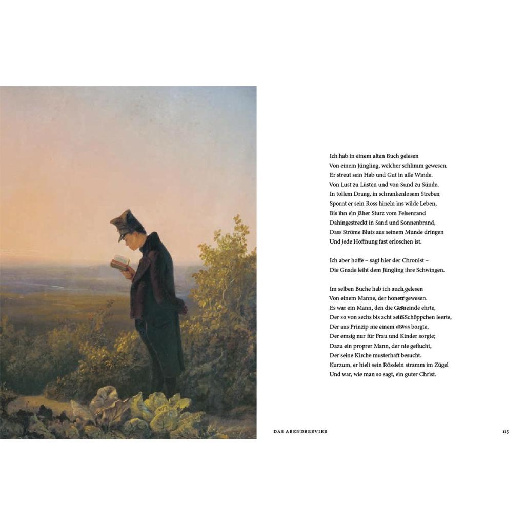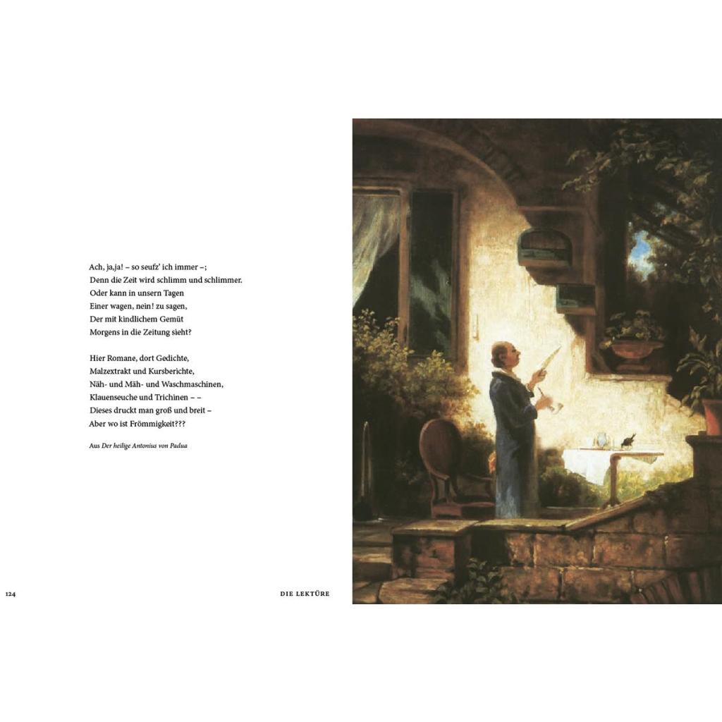 Was passiert, wenn man Gedichte von Wilhelm Busch und Gemälde von Carl Spitzweg einander gegenüber stellt? Es scheint fast, als wäre ein Gedicht direkt für ein bestimmtes Bild geschrieben worden und umgekehrt. Dabei haben sich die beiden, wenn überhaupt, nur flüchtig gekannt. Ihre Gedichte und Gemälde halten bei der Gegenüberstellung überraschend intensive Zwiegespräche miteinander und offenbaren so die tiefe Geistesverwandtschaft ihrer Künstler: Wilhelm Busch und Carl Spitzweg lebten beide zurückgezogen, waren aber gleichzeitig scharfsichtige Beobachter der Eigenheiten und Wunderlichkeiten ihrer Mitmenschen. Diese zeichneten sie in ihren Werken mit hintergründigem Humor nach. So verbinden sich Wilhelm Buschs Gedichte und Carl Spitzwegs Bilder in »Busch trifft Spitzweg« zu einem heiteren Stück deutscher Literatur- und Kunstgeschichte - ein wundervolles Geschenk.