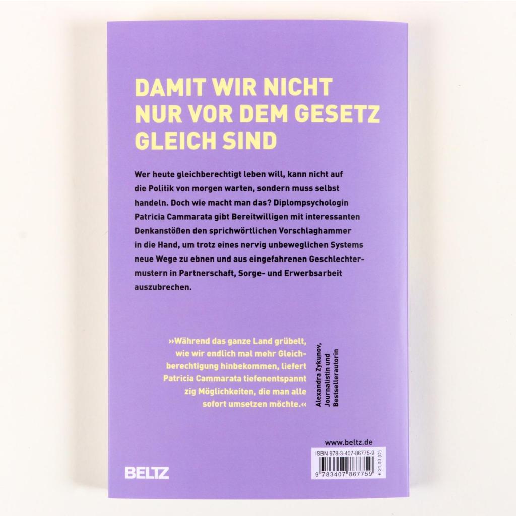 | Keyword: | Beruf; Burn-out; Care-Arbeit; Chancengleichheit; Denkanstöße; Diskriminierung; Eltern; Emanzipation; Emotionale Arbeit; Equal Pay Day; Erschöpfung; Familien; Familienorganisation; Fawning; Feminismus; Frauen; Frauenrechte; Gender Care Gap; Gender Pay Gap; Geschlechterrollen; Gesellschaftskritik; Gleichbehandlung; Gleichberechtigung; Haushalt; Hilfe; Ideen; Job; Kinder; Kommunikation; Lösungen; Maternal Gatekeeping; Mental Load; Mutterbild; Männer; Männlichkeit; Mütter; Netzwerk; Paare; Partnerschaft; Patriarchat; Pension Gap; Role Models; Sachbuch; Sexismus; Sorgearbeit; Stereotpye; Stress; Teilzeit; Ungerechtigkeit; Ungleichheit; Vereinbarkeit; Vorbilder; Väter |