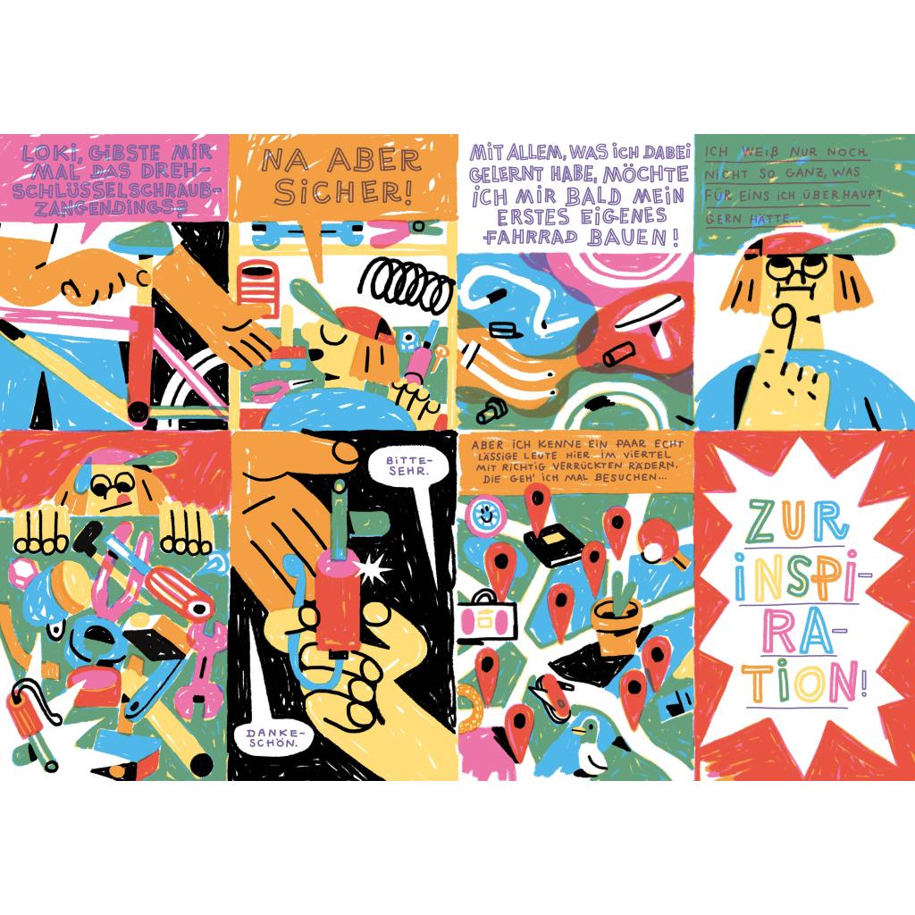 | Keyword: | DIY; Fahrrad; Gemeinschaft; Kindercomic; Nachbarschaft; Sharing; Teilen; Werkstatt |