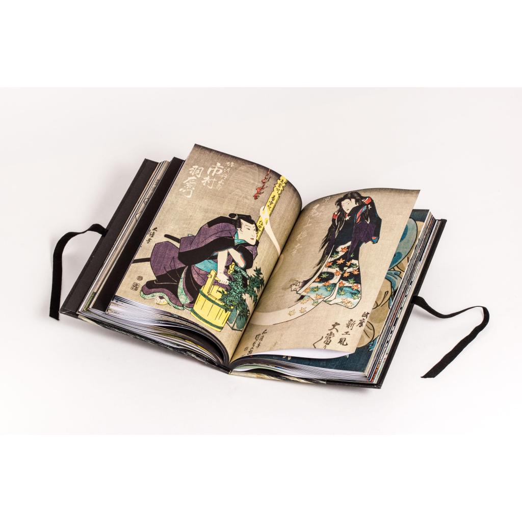 in Werken der japanischen Holzschnittkunst - vereint in einer prachtvollen Ausgabe mit Seidenüberzug, schwarzem Farbschnitt und Verschlussbändchen