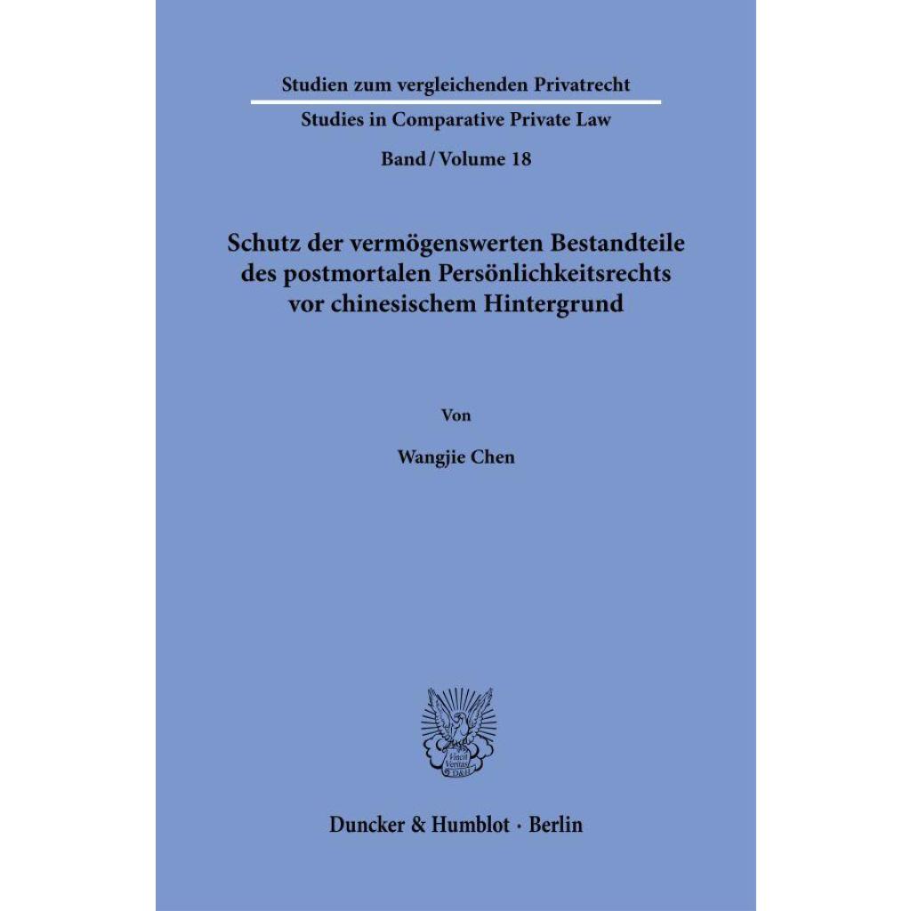 »Protection of the Pecuniary Elements of the Post-Mortem Personality Right from the Chinese Background«: This thesis deals in depth with the post-mortem right of personality, in particular with the pecuniary elements. In addition, the author attempts to answer important questions about post-mortem personality rights. On the basis of a comparative study with German personality law and the findings of the economics, the deficits of Chinese legislation on post-mortem personality law are pointed out and suggestions for improvement presented.