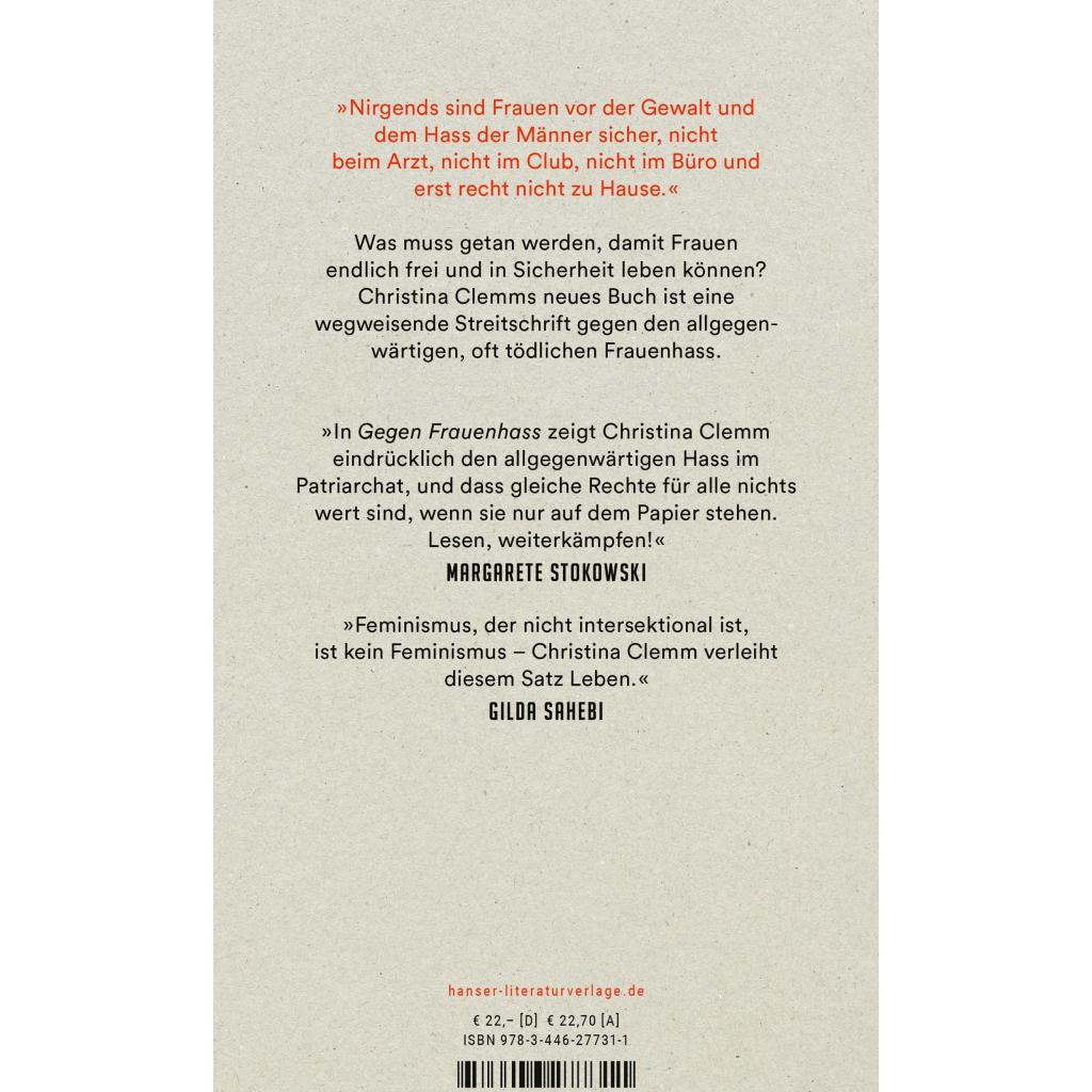"Alle, wirklich alle Frauen können betroffen sein. Und alle, wirklich alle Männer können Täter sein." Die Rechtsanwältin Christina Clemm zeigt, wie allgegenwärtig die Gewalt gegen Frauen ist, und was wir verändern müssen - politisch wie privat. Lisa M. trifft Mirko im Studium. Sie verlieben sich, streiten kaum. Dann wird sie schwanger, sie ziehen zu seiner Mutter, haben bald drei Kinder. Eine Familie wie im Bilderbuch, wäre da nicht seine Wut. Anfangs muss Lisa die Hämatome noch verstecken, mit der Zeit wird er zielsicherer. Sie versucht zu fliehen, doch vergeblich. Christina Clemm ist Strafverteidigerin, sie hat hunderte Opfer geschlechtsspezifischer Gewalt vertreten. Und sie ist wütend - weil in Deutschland jeden dritten Tag eine Frau von ihrem (Ex-)Partner umgebracht wird. Weil Frauen beim Arzt, in der Arbeit und auf offener Straße Gewalt erleben und niemand etwas dagegen tut. Warum nicht? Ist es Unkenntnis, Hilflosigkeit, Desinteresse? Oder liegt dem Ganzen ein tief verwurzelter Frauenhass zugrunde? Christina Clemm führt uns durch die Spirale patriarchaler Gewalt und zeigt, was getan werden muss.