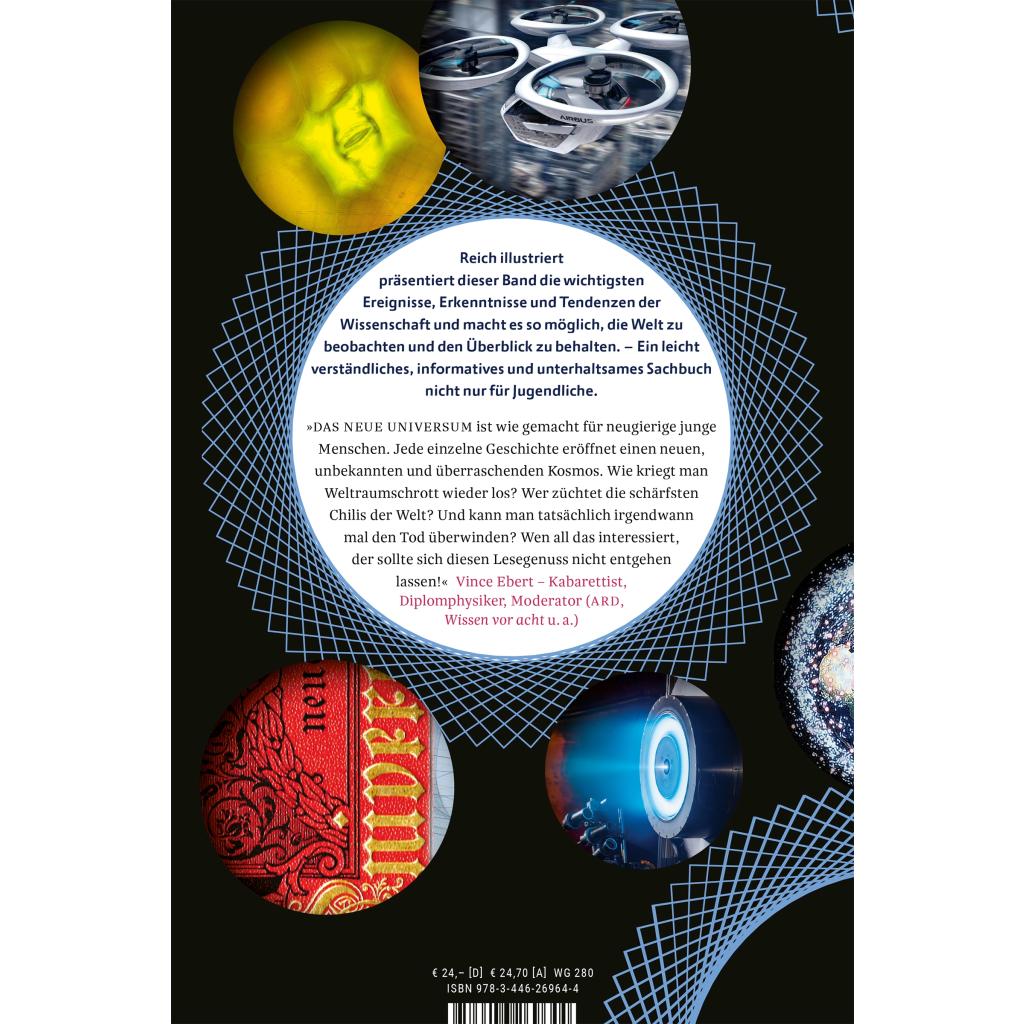 Wissenschaft, Forschung und Technik - aktuelle Entwicklungen und Reportagen für alle, die neugierig sind Was geschieht in der Welt, und wohin entwickelt sie sich? "Das neue Universum" versammelt die spannendsten Reportagen und Berichte aus Forschung, Wissenschaft und Technik der letzten Jahre. Darüber hinaus enthält der Band Artikel zu aktuellen Entwicklungen in der Astronomie und stellt wissenschaftlich-technische Spekulationen zu Raumfahrtthemen, fremden Zivilisationen und zukünftigen Entwicklungen vor. Reich illustriert und durch Bildreportagen und unterhaltsame Geschichten ergänzt, präsentiert er die wichtigsten Ereignisse, Erkenntnisse und Tendenzen der Wissenschaft und macht es so möglich, die Welt zu beobachten und den Überblick zu behalten. - Ein bebildertes Best-of-Jahrbuch und ein leicht verständliches, informatives Sachbuch nicht nur für Jugendliche.