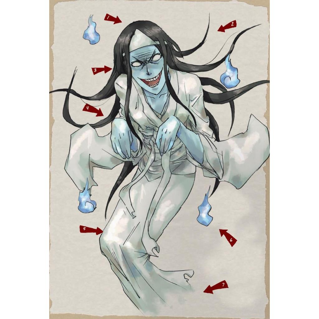 Angriff der japanischen Geister mit Illustrationen im Manga-Stil. Japanische Mythologie