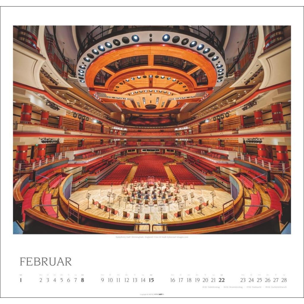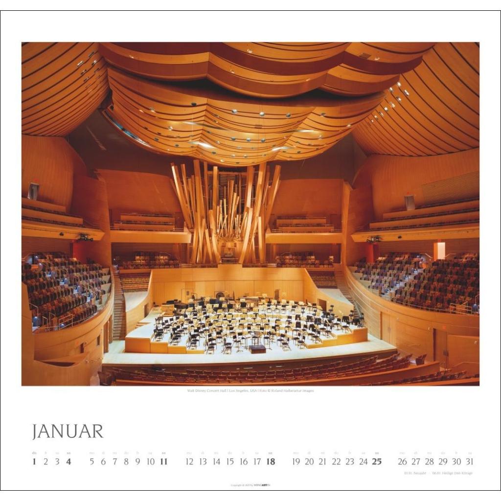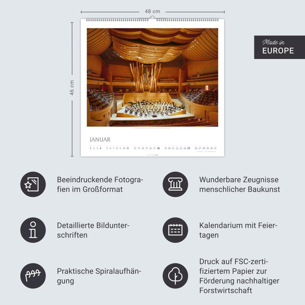 Jahres-Wandkalender 2026 mit berühmten Konzerthäusern und prachtvoller Architektur aus aller Welt. Hochwertiger Foto-Wandkalender im Format 48 x 46 cm