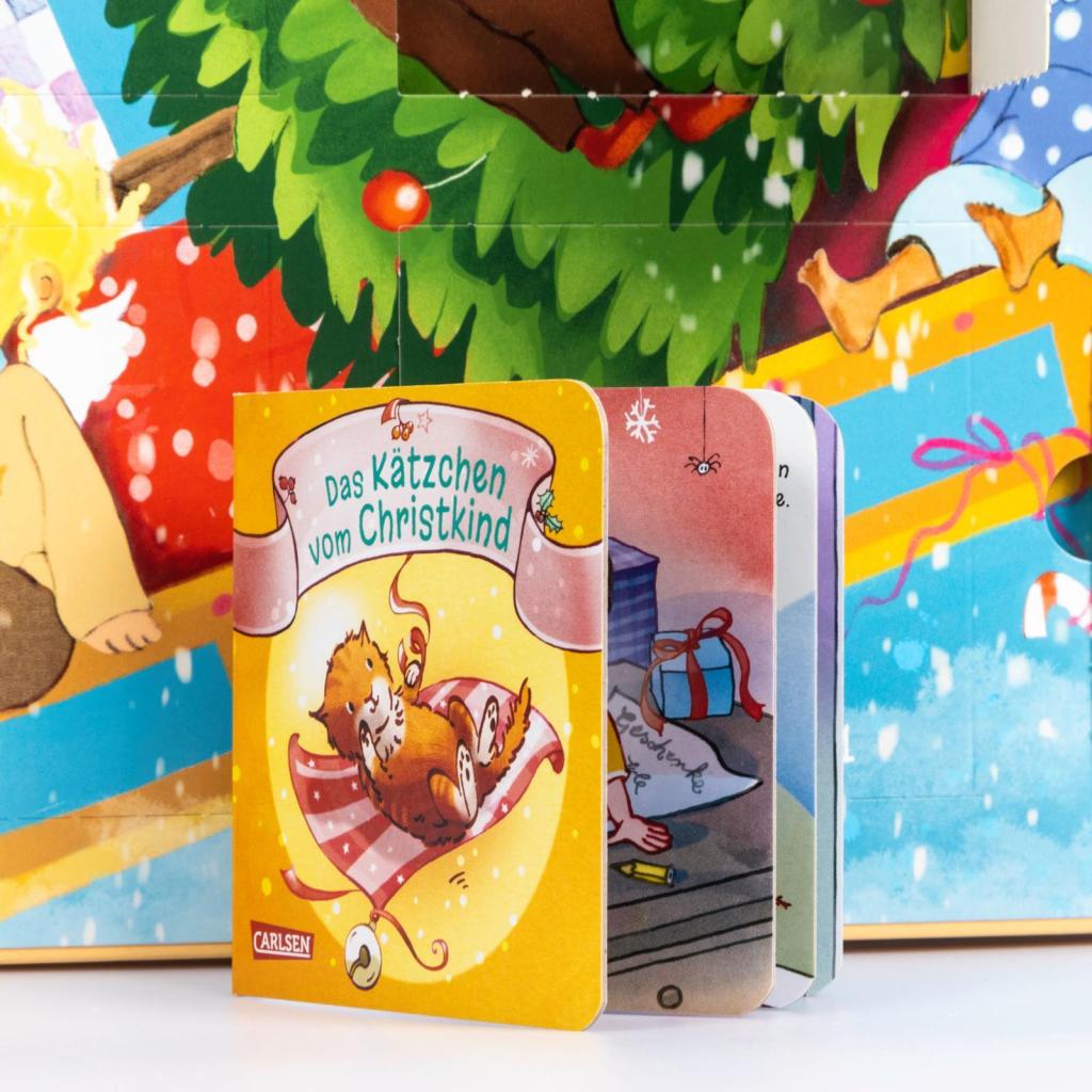 Extragroßer Baby-Adventskalender mit 24 Minibüchern Hinter jedem Türchen wartet ein liebevoll gestaltetes Pappbilderbuch zum Herausnehmen mit je 10 Seiten. Die exklusiv für diesen Kalender erstellten Minibücher sind perfekt auf kleine Kinderhände abgestimmt und begleiten die Kleinsten durch die Adventszeit. Von der biblischen Weihnachtsgeschichte über stimmungsvolle Weihnachtslieder bis hin zu Winterabenteuern für kleine Wichtel findet hier jedes Kind sein Lieblingsbuch. 24 Pappbilderbücher mit stabilen Seiten Exklusive, neue Geschichten rund um Winter und Weihnachten Großformatiger Kalender mit praktischem Kordelband zum Aufhängen Geeignet für Kleinkinder ab 18 Monaten Die schönste Zeit des Jahres genießen - mit 24 Weihnachtsgeschichten zum Vorlesen, Entdecken und Immer-wieder-Anschauen!