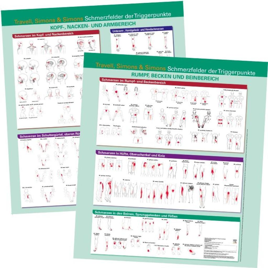 Diese beiden Poster bieten einen Überblick über die Ausstrahlungsmusster und Schmerzfelder der Triggerpunkte, basierend auf den Abbildungen des Originalwerkes. Gegliedert nach Körperregionen sind die behandlungsrelevanten Muskeln in einzelnen Grafiken dargestellt. Die Wandtafeln sind ideal zur schnellen Orientierung im Behandlungsraum und sind gleichzeitig optimal zur Ausstattung des Raumes/Dekoration. Die Wandtafeln im Format 83x93 cm eignen sich für: Neuraltherapeut*innen Physiotherapeut*innen Akupunkteur*innen