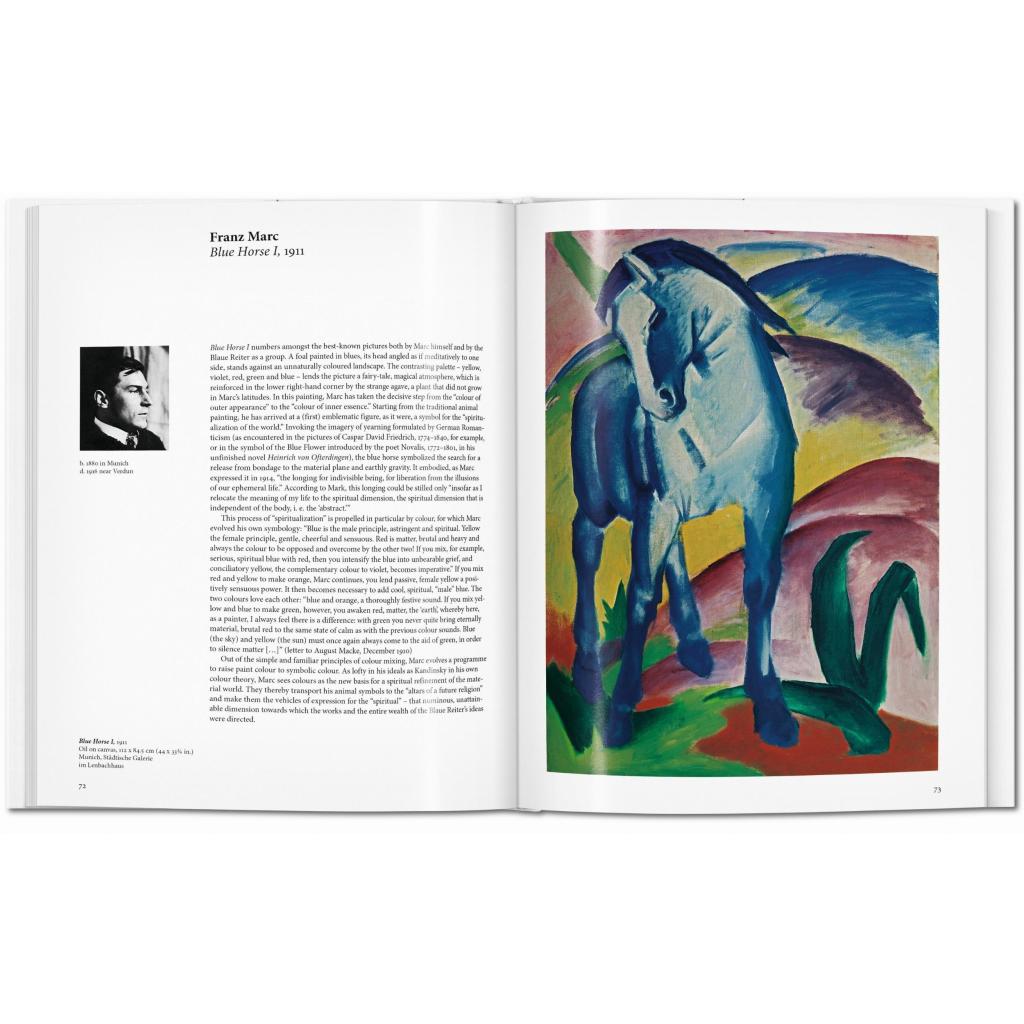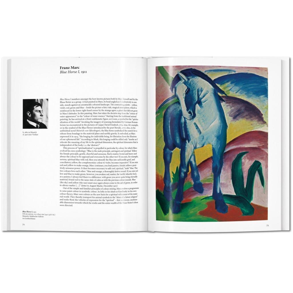Das 1912 erschienene illustrierte Jahrbuch "Der Blaue Reiter" gilt als eines der wichtigsten Manifeste der modernen Kunst in Europa. In ihm formulierten der russische Emigrant Wassily Kandinsky , sein Freund Franz Marc und andere assoziierte Künstler ihre Vorstellungen von einer neuen Kunst, die das traditionelle Formenrepertoire sprengen und den Blick von der äußeren Realität auf die innere richten sollte. Auch wenn sie sich dabei auf ähnliche Vorbilder wie die Maler der Künstlergruppe Die Brücke beriefen, auf die Fauvisten etwa und die sogenannte primitive Kunst, strebten sie anders als diese nicht einen einheitlichen neuen Stil an. Der Blaue Reiter fungierte als loser Verbund, in dem eine Vielzahl gänzlich eigenständiger Entwicklungen möglich war. Der Blaue Reiter wurde durch den Ausbruch des Ersten Weltkriegs, in dem zwei seiner führenden Künstler fielen, aber auch durch wachsende Unstimmigkeiten zwischen den Protagonisten der Gruppe unvermittelt zu Grabe getragen. Diese Einführung zeichnet anhand zentraler Werke wie Franz Marcs Blauem Pferd I (1911), Kandinskys Bild mit schwarzem Bogen (1912) und August Mackes Dame in grüner Jacke (1913) die kurze, aber für die moderne Kunst folgenreiche Geschichte dieser Gruppierung nach.