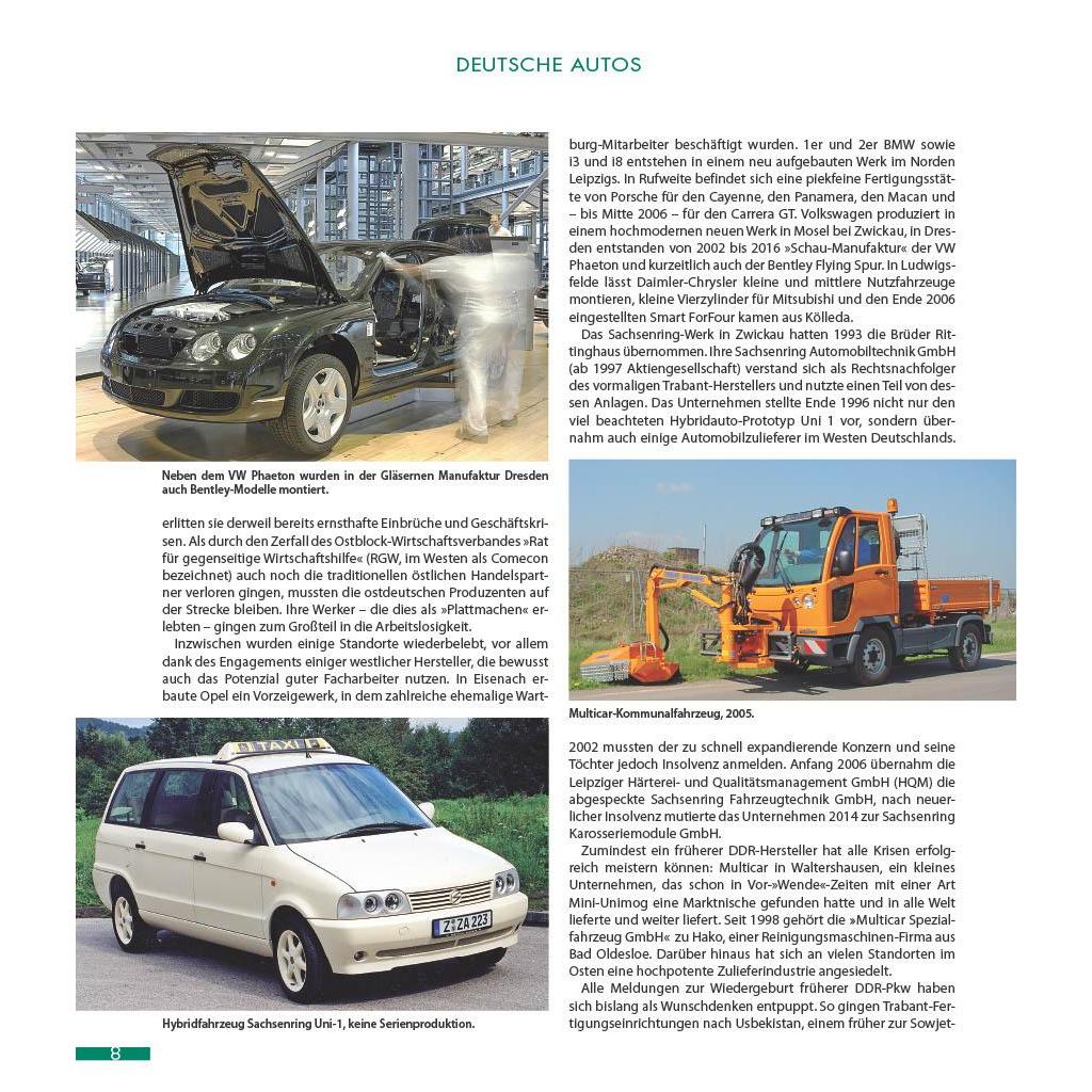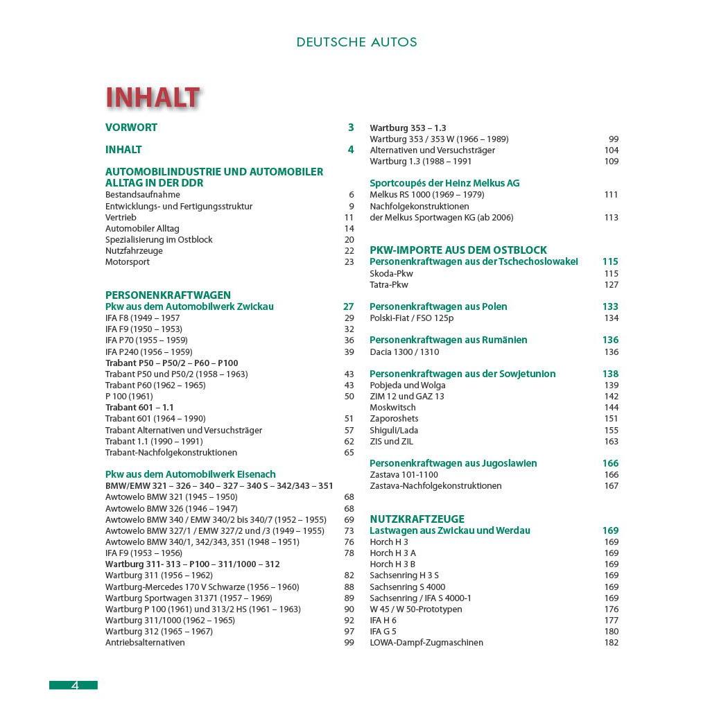 Von wegen nur Trabant und Wartburg. Wer glaubt, dass in der DDR nur diese beiden ihr Zweitakt-Fähnchen schwenkten, täuscht sich gewaltig. Denn im Straßenbild des Arbeiter- und Bauernstaates gab es durchaus manche Abwechslung. Im Personenwagenbereich gab es z.B. die Modelle F8, F9 und P70 von IFA oder EMW von Awtowelo, dazu kamen Pkw aus den benachbarten osteuropäischen Staaten. Bei den Lastwagen gab es Modelle wie Horch, Framo oder Barkas, wiederum ergänzt durch Laster der Nachbarn. Michael Dünnebier und Eberhard Kittler beschreiben alle diese Fahrzeuge und noch mehr mit ihrer Geschichte und Technik und illustrieren sie mit rund 600 Abbildungen.