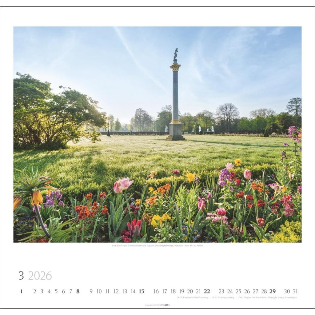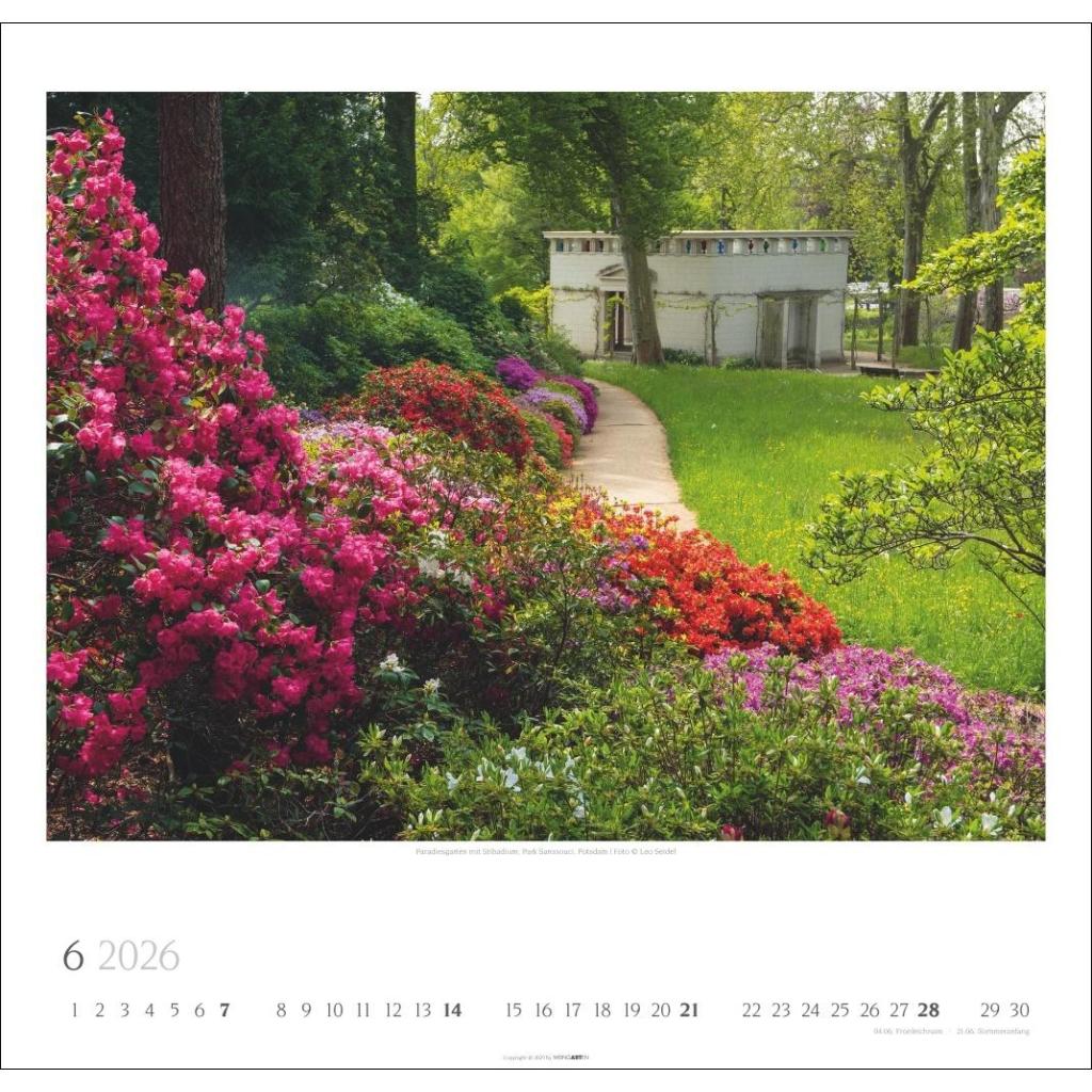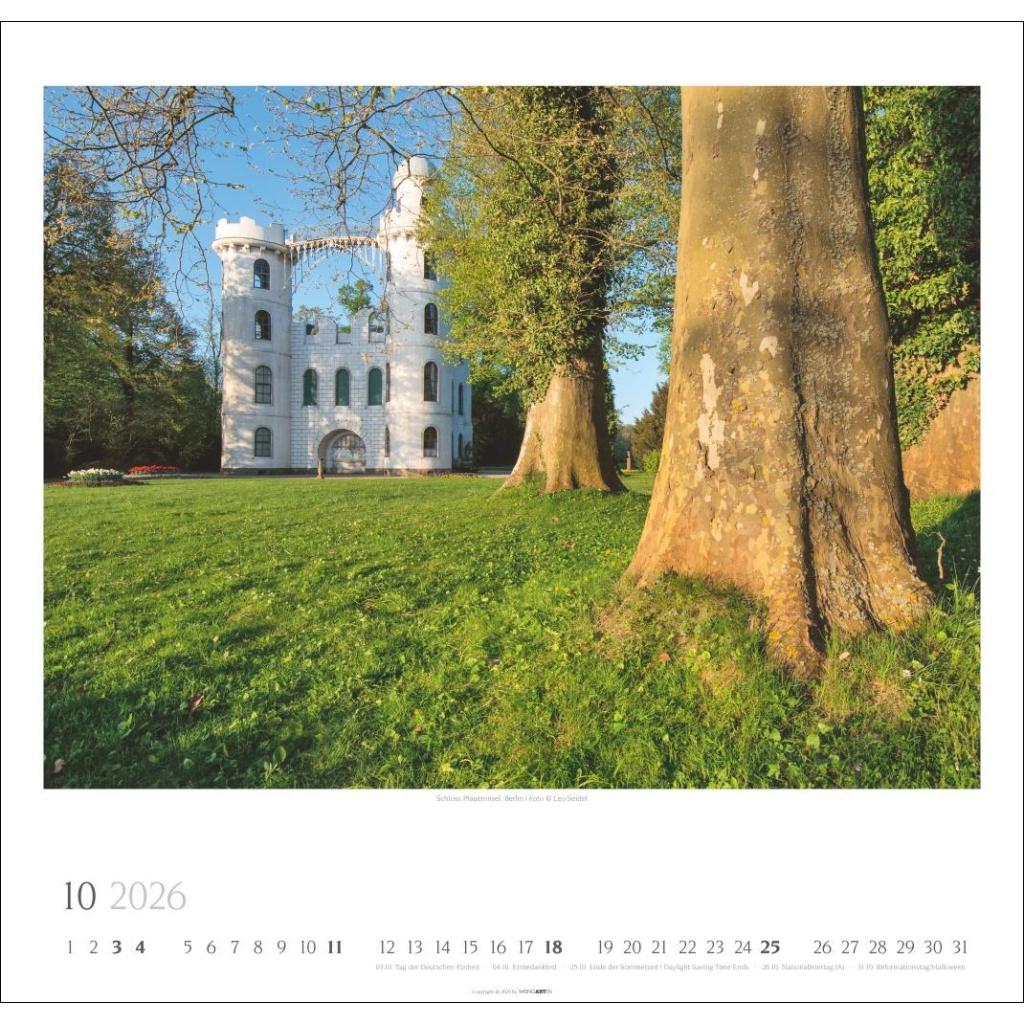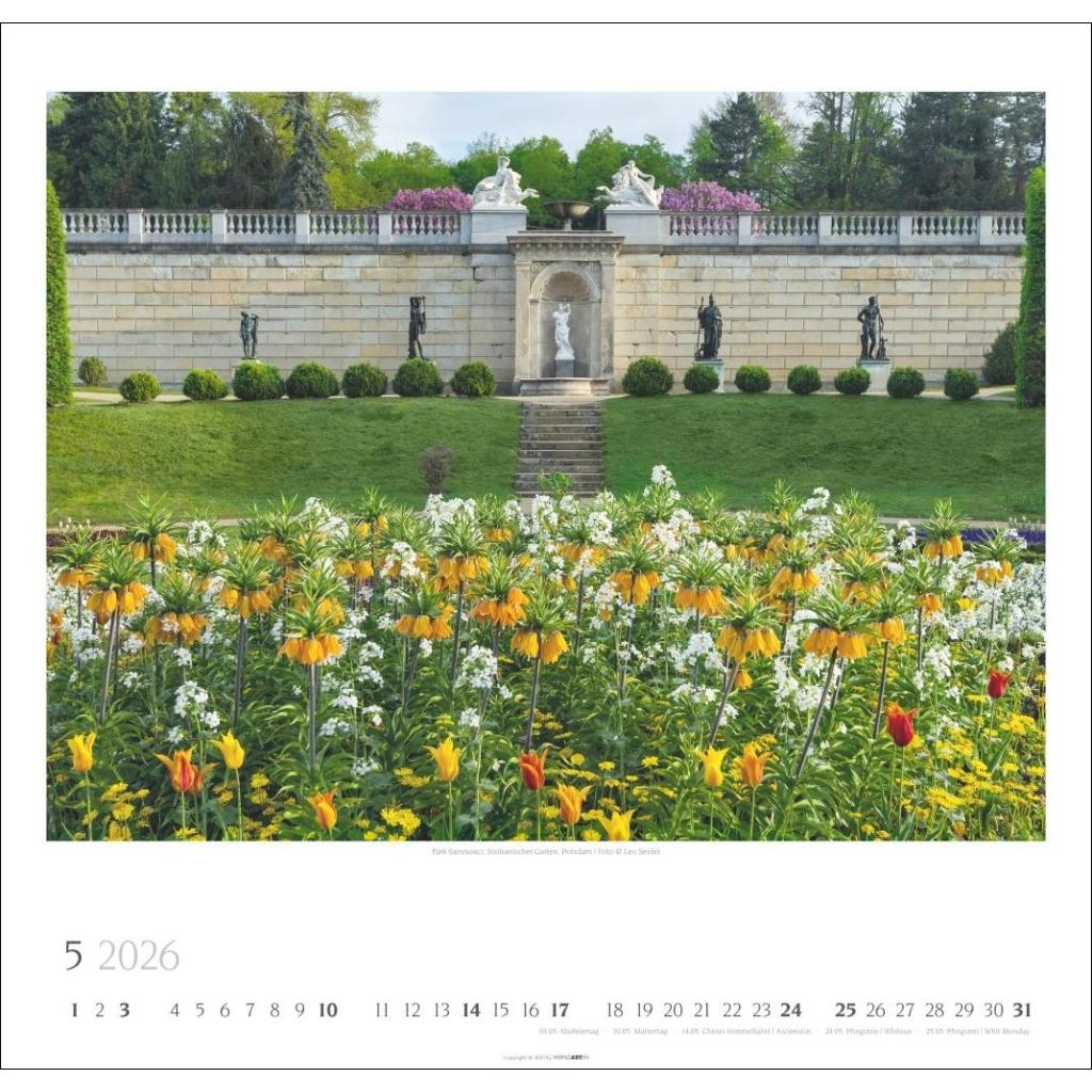 Wandkalender mit 12 Fotos romantischer Schloss-Gärten. Fotokalender im Format 48 x 46 cm für das Jahr