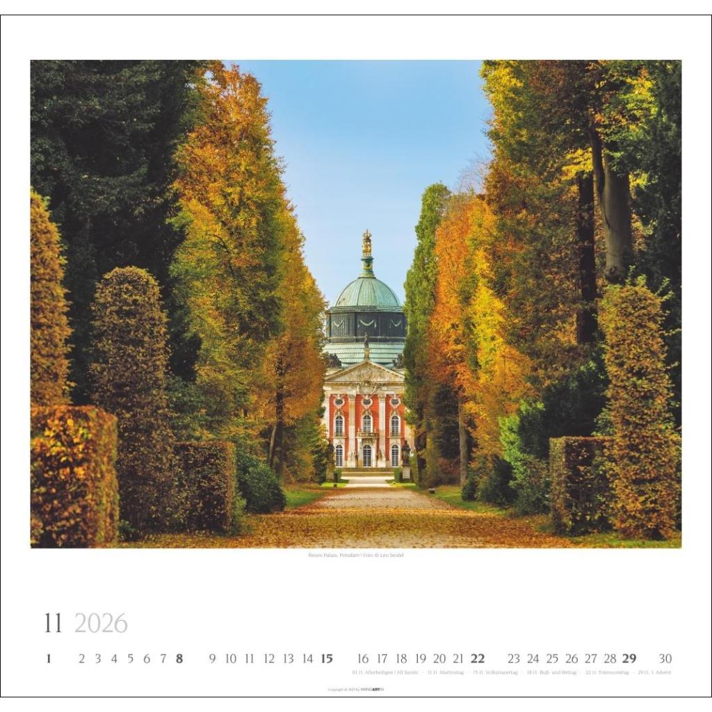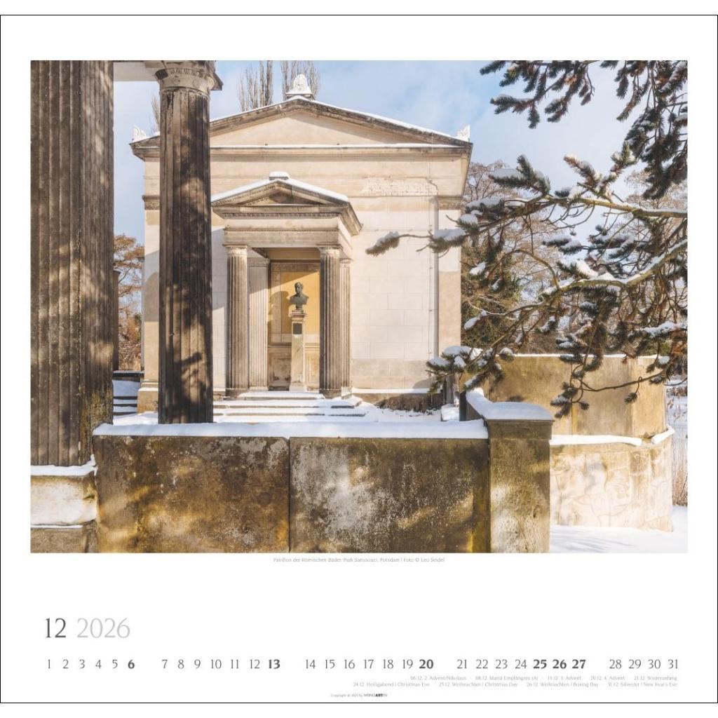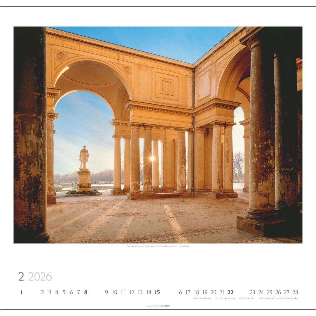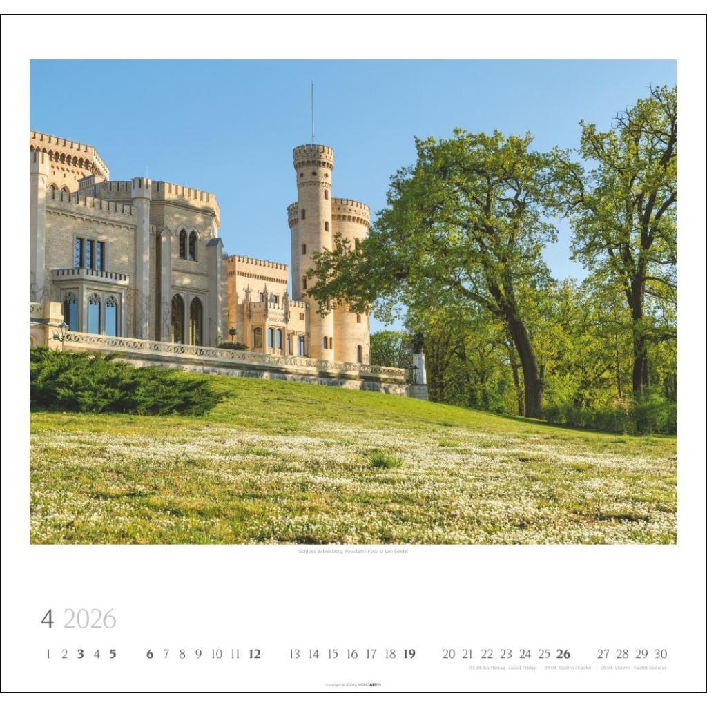 Wandkalender mit 12 Fotos romantischer Schloss-Gärten. Fotokalender im Format 48 x 46 cm für das Jahr