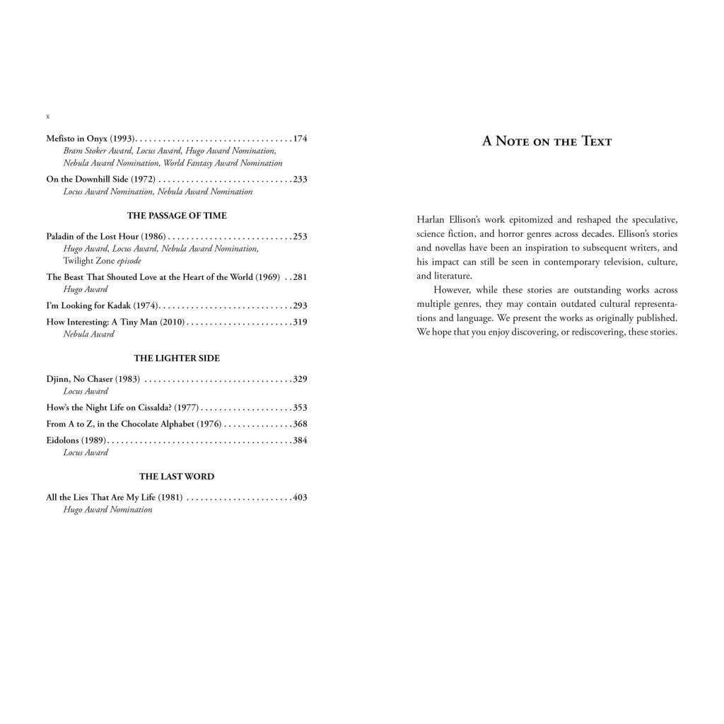 | Keyword: | short stories;short story collection;science fiction;fantasy;horror;SFF;horror stories;harlan;ellison;scary short stories;new wave;ursula k. le guin;ray bradbury;speculative fiction;i have no mouth but i must scream;hugo award;stoker award;nebula award;Harlan Ellison;classic sci fi;classic horror;neil gaiman;classic books;bram stoker award;edgar award;Sci fi books;Harlan Ellison books;Dangerous Visions;A Boy and His Dog;The Twilight Zone;Star Trek;i have no mouth and i must scream |