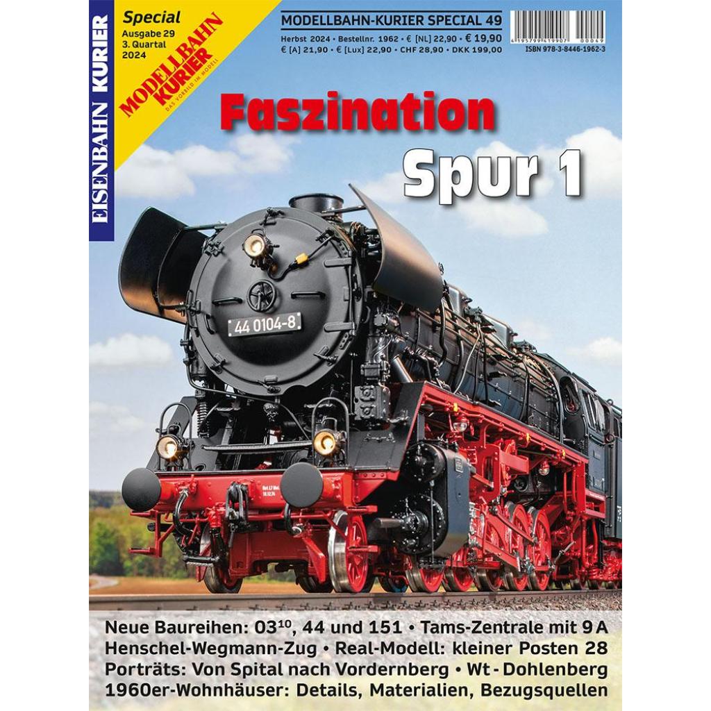 Mit der 44er von Spur 01 Modellbahnen steht wieder eine große Einheits-Schlepptenderloks im Fokus, während sich Märklin der schweren Einheits-Ellok der Baureihe 151 angenommen hat. Zeitgleich zum Ausscheiden der Baureihe beim Vorbild liefern die Göppinger ihre Neukonstruktion aus. | Elegant und luxuriös: der bereits lieferbare "Blaue Enzian" von Spur 1 Austria | Christian Gahre präsentiert u.a. zwei neue Chemiekesselwagen und erweitert sein Sortiment um viel interessantes Zubehör. | Ideal für die Spur 1 ist die neue Version der Digitalzentrale mc2 von Tams mit einer Leistung von 9 A. | Michiel Stolp berichtet über die zweite Hälfte seiner Anlage "Wt-Dohlenberg"; ebenso fortgesetzt wird das Porträt der beeindruckenden Heimanlage "Von Spital nach Vordernberg". | Klein aber fein ist der Posten 28 in Ziegelbauweise - der erste Spur-1-Gebäudebausatz von Real-Modell. | Ein Highlight im wahrsten Wortsinn sind die funktionsfähigen Leuchtkästen mit Miniatur "Leuchtstoffröhren" von Montaperti Modelltechnik, die sich vielseitig für Hinweis- und Werbeschilder einsetzen lassen.