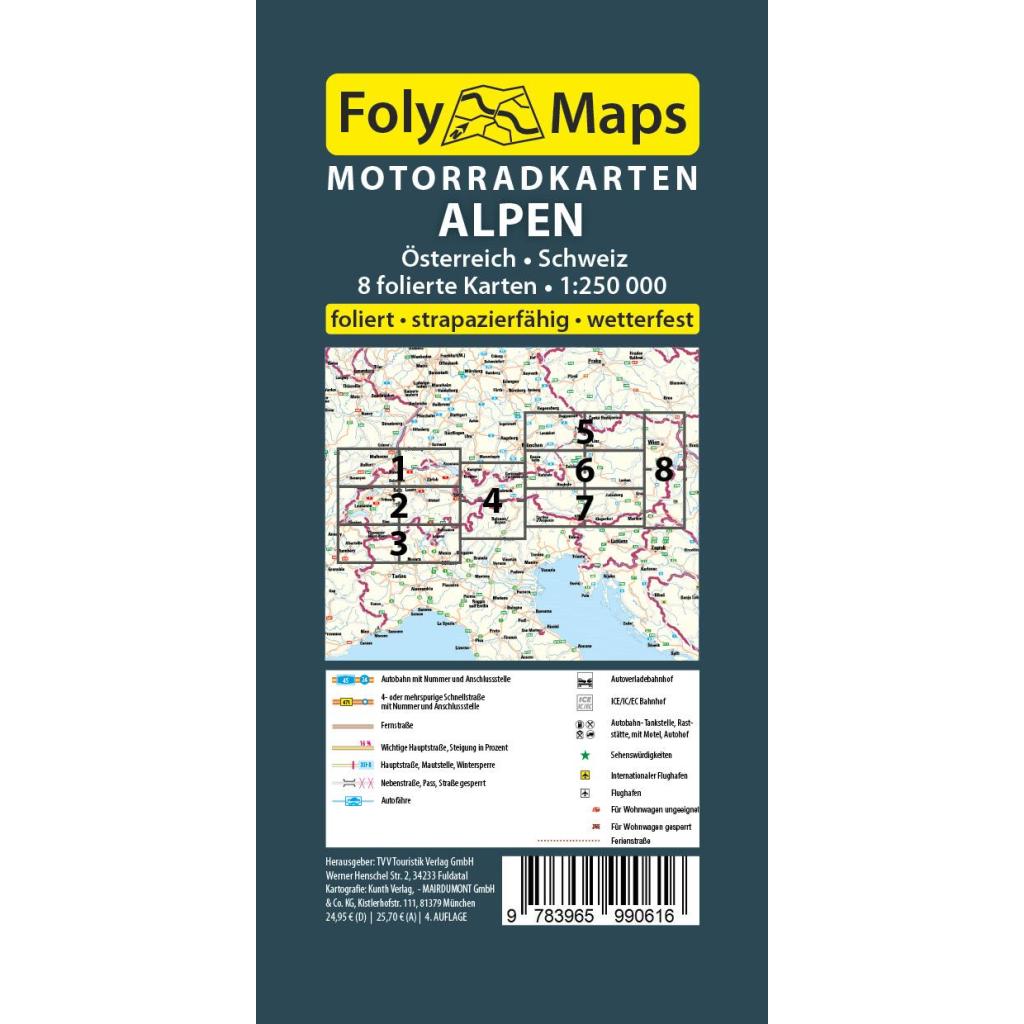 | Keyword: | Alpen; Alpenländer; FolyMaps; Kartenset; Motorrad; Motorrad Karten; Motorrad Kartenset; Motorradkarte; Motorradkarten; Motorradkarten Set; Road Trip; Roadtrip; Schweiz; Straßenkarte; Wohnmobil; foliert; folierte Karte; laminiert; laminierte Karte; Österreich |