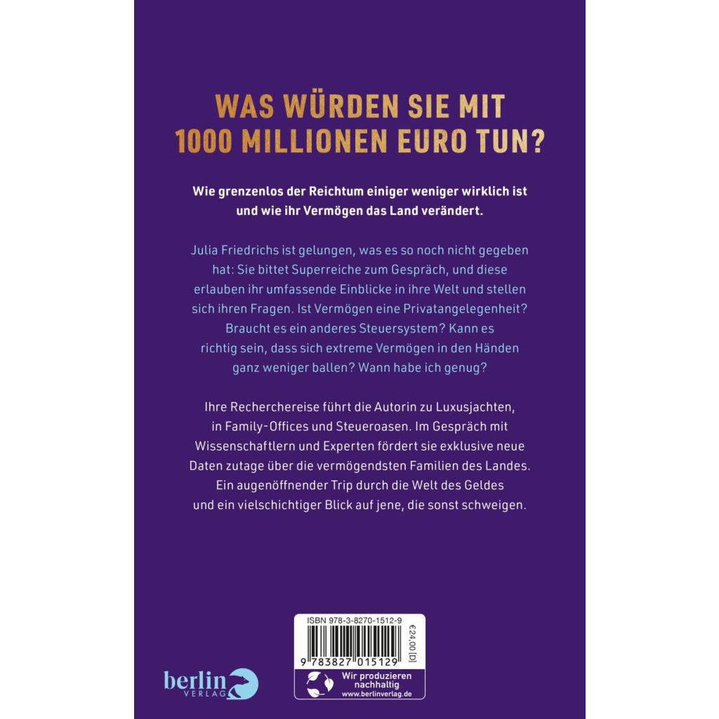 | Keyword: | Deutsche Wirtschaftsdynastien; Erben; Erbschaft; Erbschaftssteuer; Firmengeschichte; Geld; Geldherrschaft; Hochvermögende; Marlene Engelhorn; Milliardenvermögen; Milliardär; Millionär; Reichensteuer; Reichtum; Sachbuch; Statussymbole; Steuerflucht; Steueroase; Steuerparadies; Superjachten; Superreiche; Unternehmer-Dynastien; Unternehmerfamilien; Vermögen; Vermögensungleichheit; Vermögensverteilung; Vermögnesverwaltung; soziale Gerechtigkeit; soziale Ungleichheit; sozialer Aufstieg |